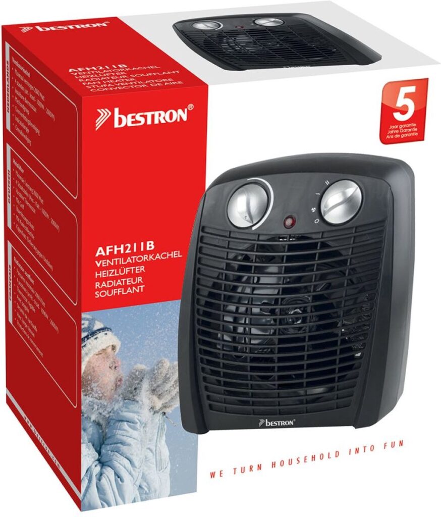 Bestron Ventilatorkachel met 2 warmtestanden, incl. omvalbeveiliging & oververhittingsbeveiliging, voor ruimtes tot 20m², 2000 watt, kleur: Zwart
