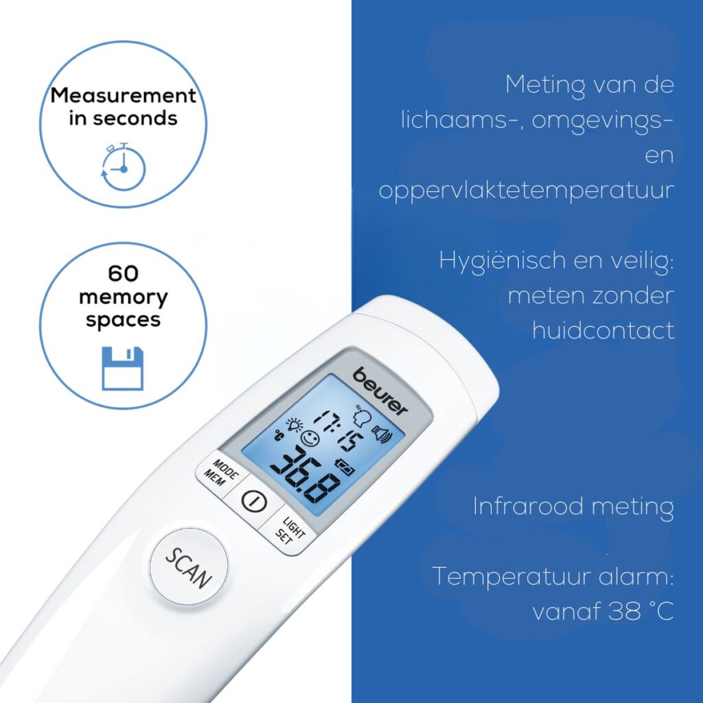 Veilig, snel en hygiënisch meten zonder aanraking? Met de Beurer FT 90 contactloze thermometer meet je binnen enkele seconden lichaamstemperatuur, oppervlakken en omgeving – geheel zonder huidcontact. Ideaal voor baby’s, kinderen en volwassenen, thuis of onderweg.
