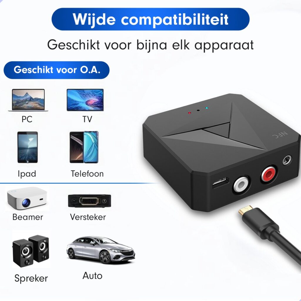 Geniet van de mogelijkheid om al je apparaten zonder Bluetooth om te zetten met de 2-in-1 Bluetooth 5.4 ontvanger en zender! De ideale draadloze, compacte oplossing voor je televisie, surround sound systeem, cd-speler, koptelefoon, luidsprekers en meer.