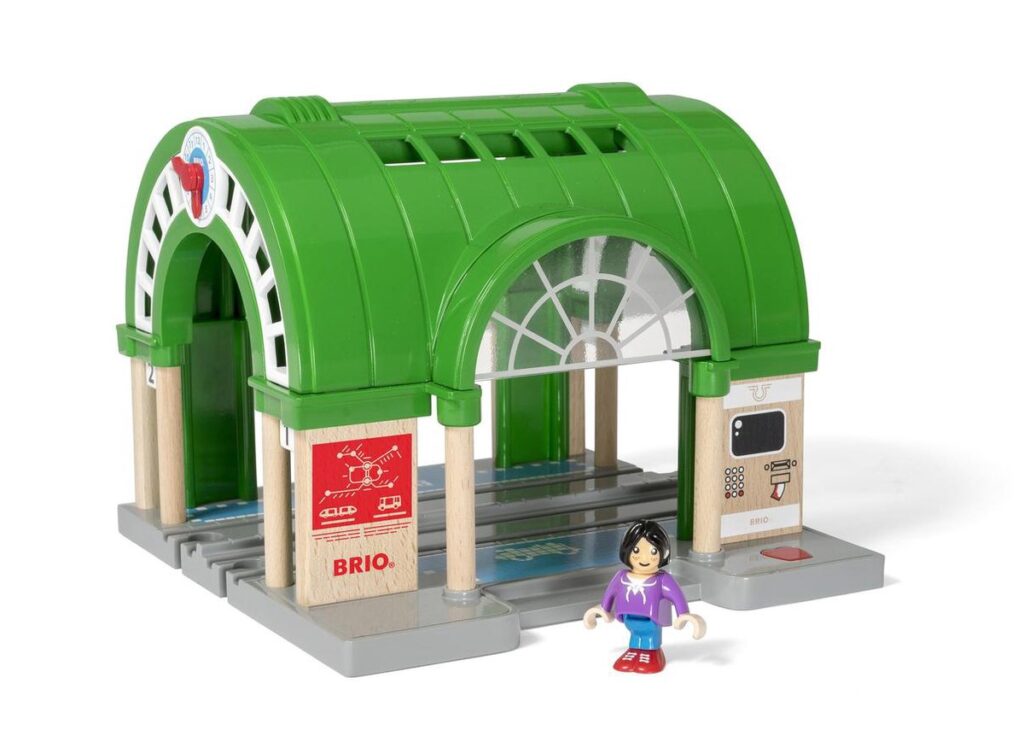 Allemaal aan boord! Het centrale treinstation heeft twee sporen en er zijn veel geluiden te horen bij de kaartjesautomaat. Het perfecte middelpunt van jouw BRIO treinwereld. Hier beginnen jouw passagiers aan hun avontuur en alleen jij weet waar ze heen gaan. Vergeet niet om kaartjes te kopen!