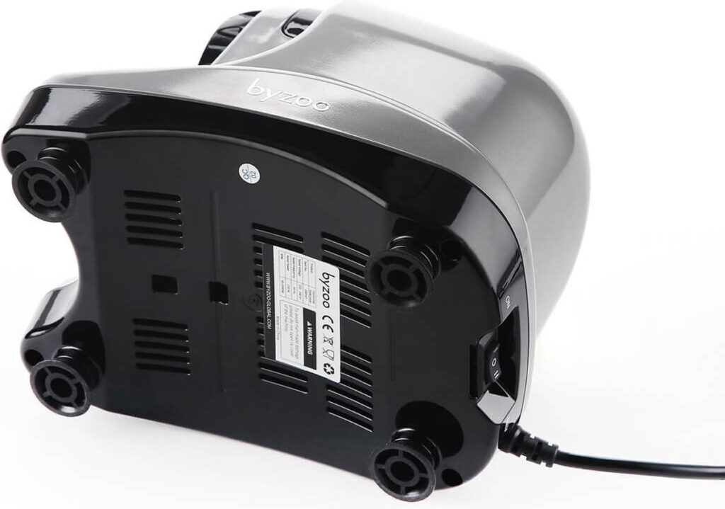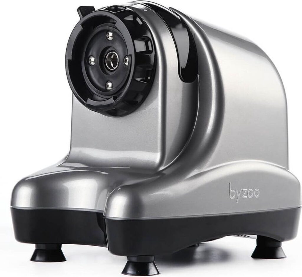 Met het zilver op zilver en de zwarte onderkant is de Byzoo slowjuicer Rhino mooi vormgegeven. Tevens is het een vrij compacte slowjuicer waardoor hij gemakkelijk in iedere keuken gebruikt kan worden.