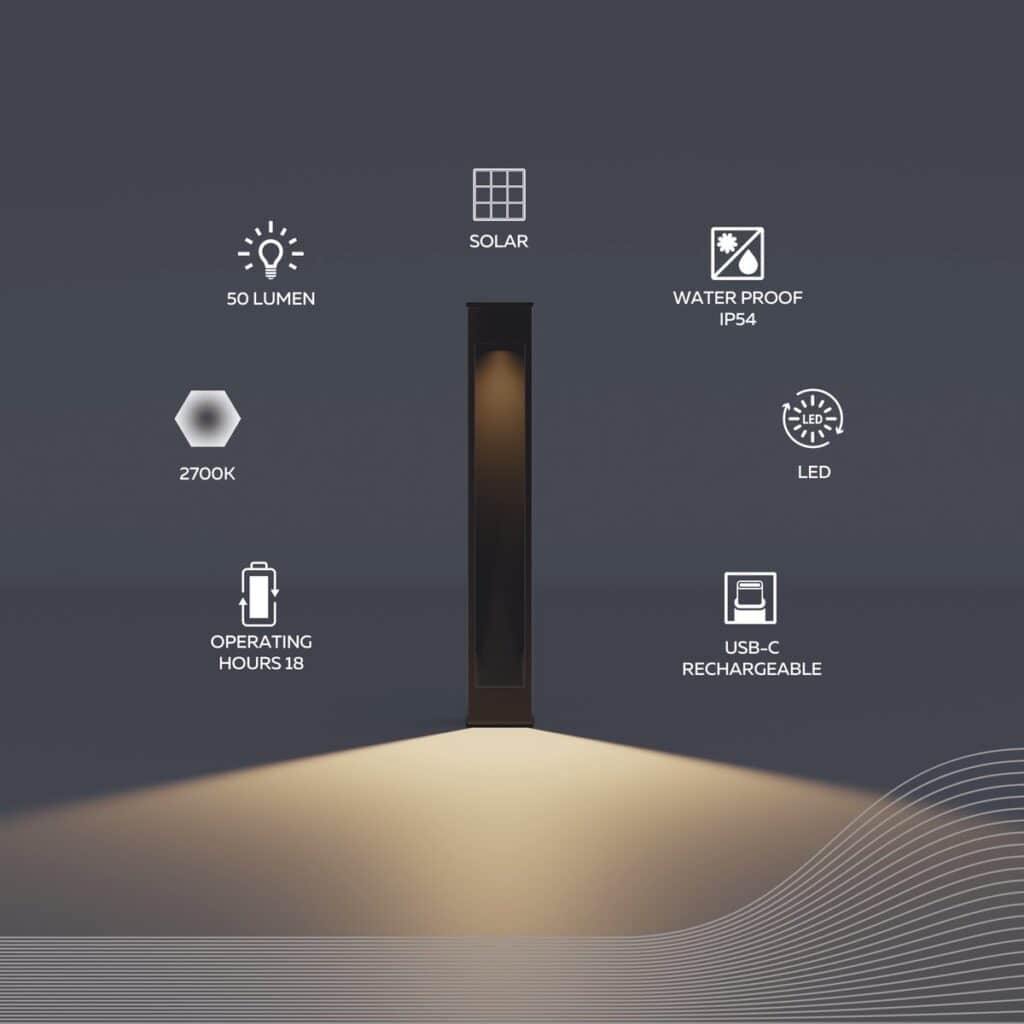 Op bewolkte dagen of in de winter kun je de lamp eenvoudig opladen via de meegeleverde USB-C kabel. Hierdoor ben je altijd verzekerd van verlichting, ongeacht het weer of de hoeveelheid zonlicht.