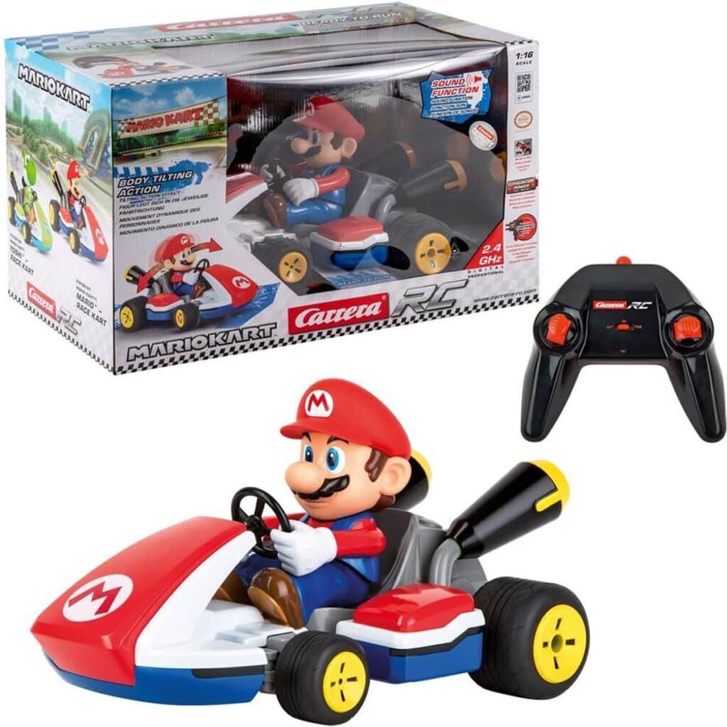Ga rechtstreeks van het videospel naar het echte leven met deze gave radiografisch bestuurbare Mario Kart van Carrera! De auto maakt geluidseffecten die uit de echte Mario spelserie komen. Dankzij de 2,4 GHz technologie kun je probleemloos lange afstanden overbruggen. De auto is op afstand bestuurbaar met behulp van een controller. De benodigde batterijen voor zowel de controller als de auto worden bijgeleverd. Ideaal als kindercadeau, maar ook heel leuk voor volwassenen!