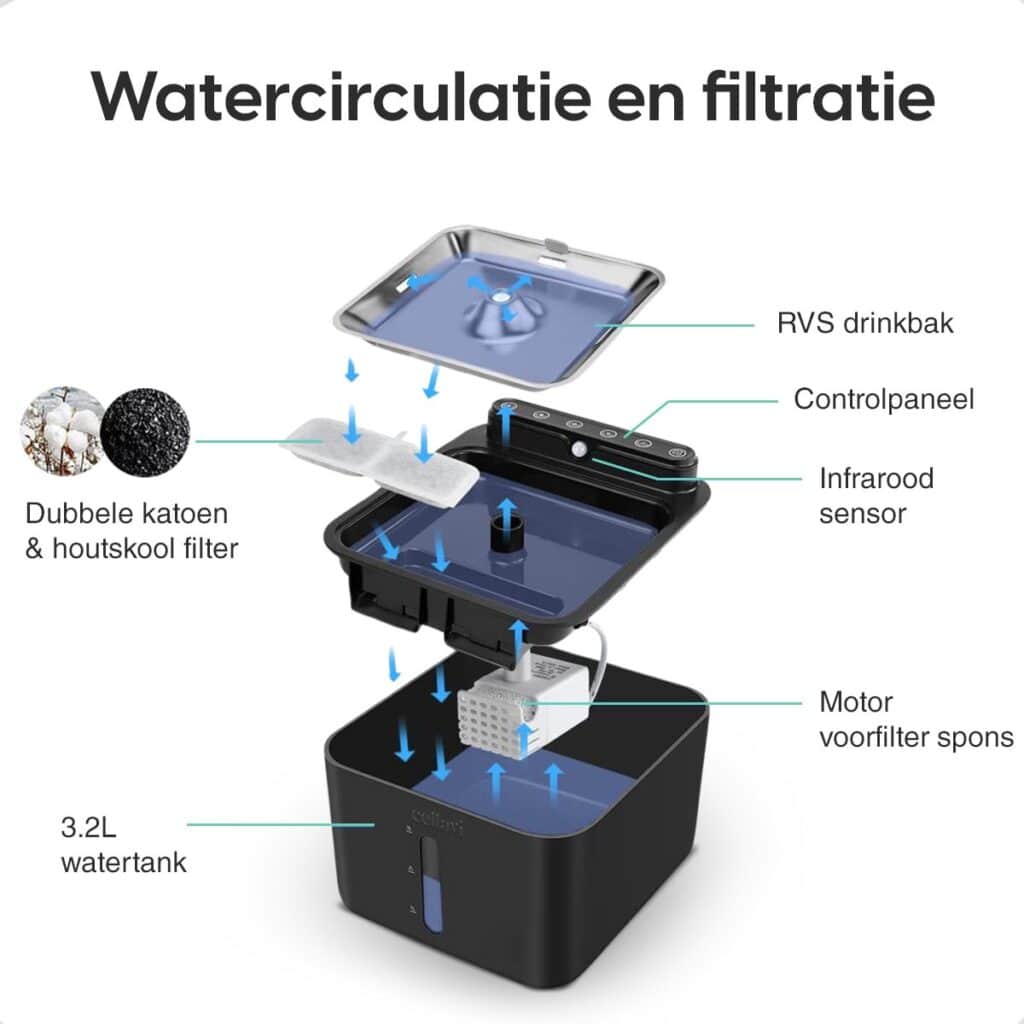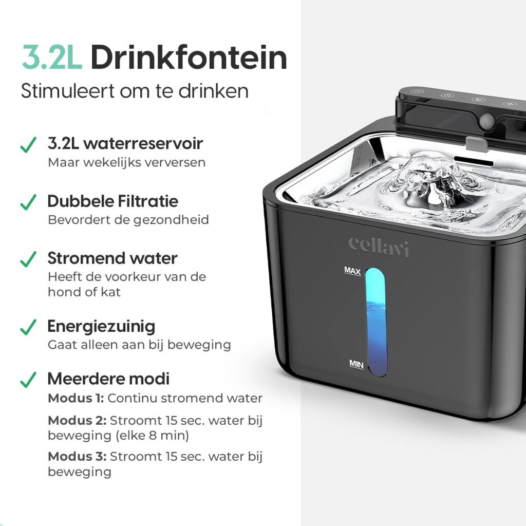 Cellavi Draadloze Drinkfontein RVS – Slim Tweedekansje voor Gezonde Hydratatie