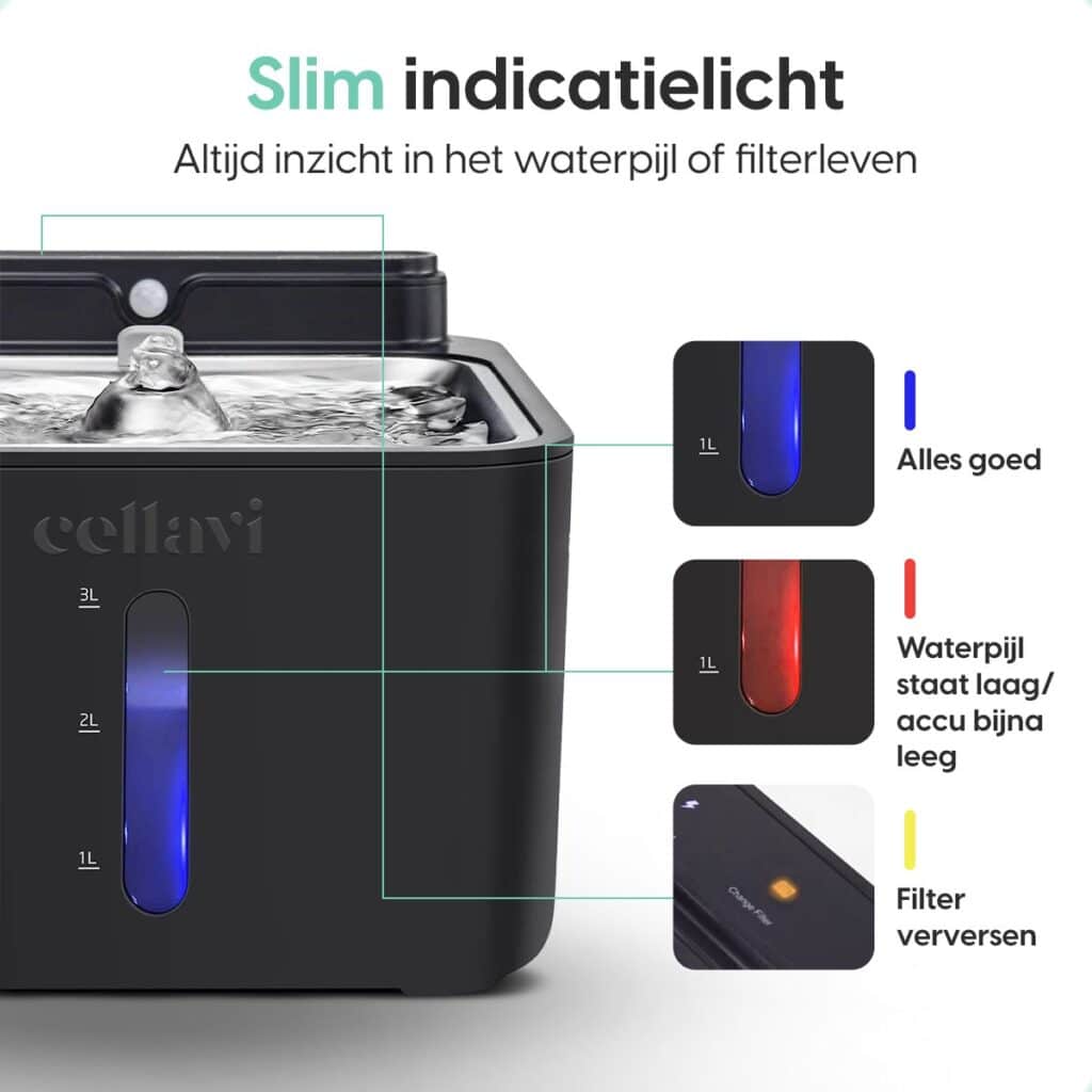 Handige LED-indicatie voor filter, batterij en waterniveau