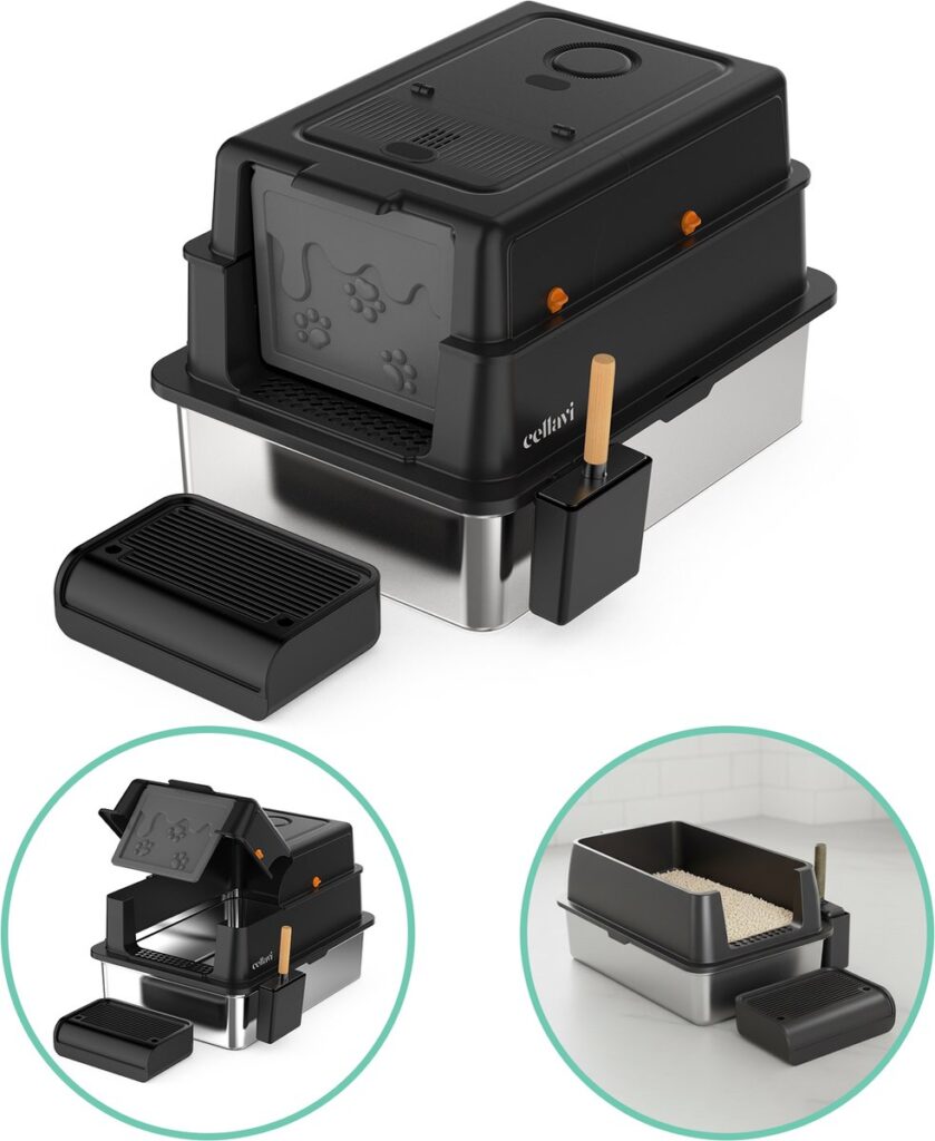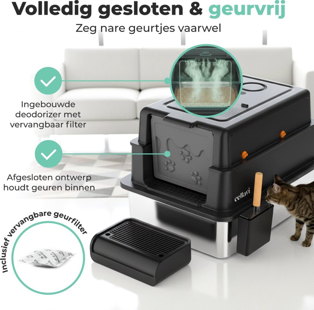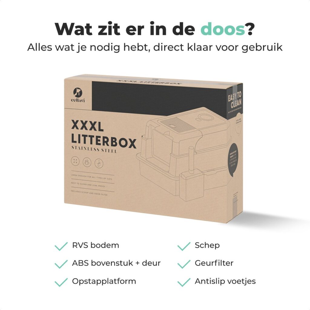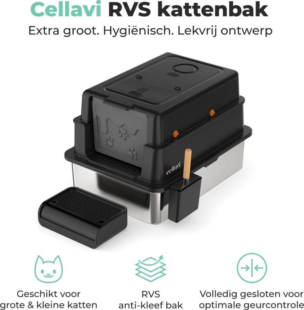 Geef jouw kat de ruimte, hygiëne en luxe die hij verdient met de Cellavi RVS Kattenbak XXXL. Deze extra grote kattenbak biedt optimale bewegingsvrijheid en is ontworpen voor katten van alle groottes. Dankzij de duurzame RVS-onderbak, het volledig gesloten ontwerp en het geïntegreerde geurfilter blijft je huis schoner en frisser. De kattenbak is zeer eenvoudig te reinigen en gaat aanzienlijk langer mee dan een standaard kunststof kattenbak.