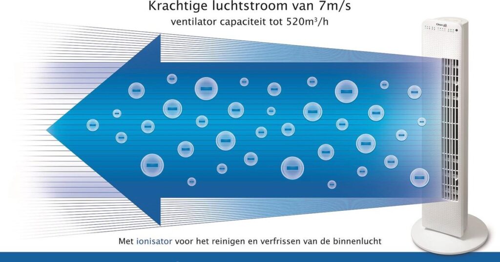 De ingebouwde ionisator produceert negatieve zuurstofionen waardoor de binnenlucht aanvullend op de verkoelende ventilatorwerking wordt gereinigd en verfrist. Negatieve ionen hangen zich aan stofdeeltjes, micro-organismen en andere ongewenste stoffen in de lucht en verbinden deze met elkaar. Deze deeltjes worden zwaarder dan de lucht, vallen neer en worden op deze wijze uit de lucht gefilterd. Geuren worden door ionisatie geneutraliseerd.