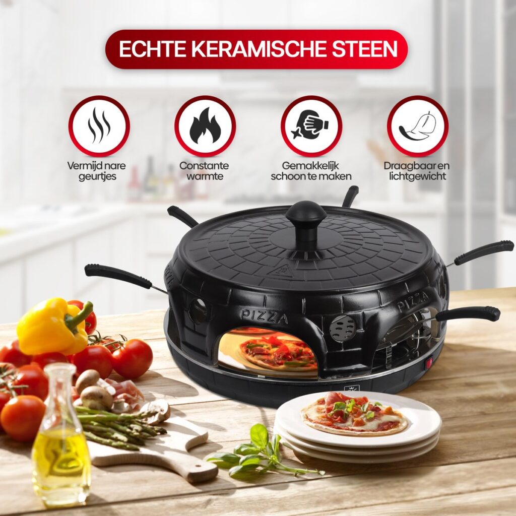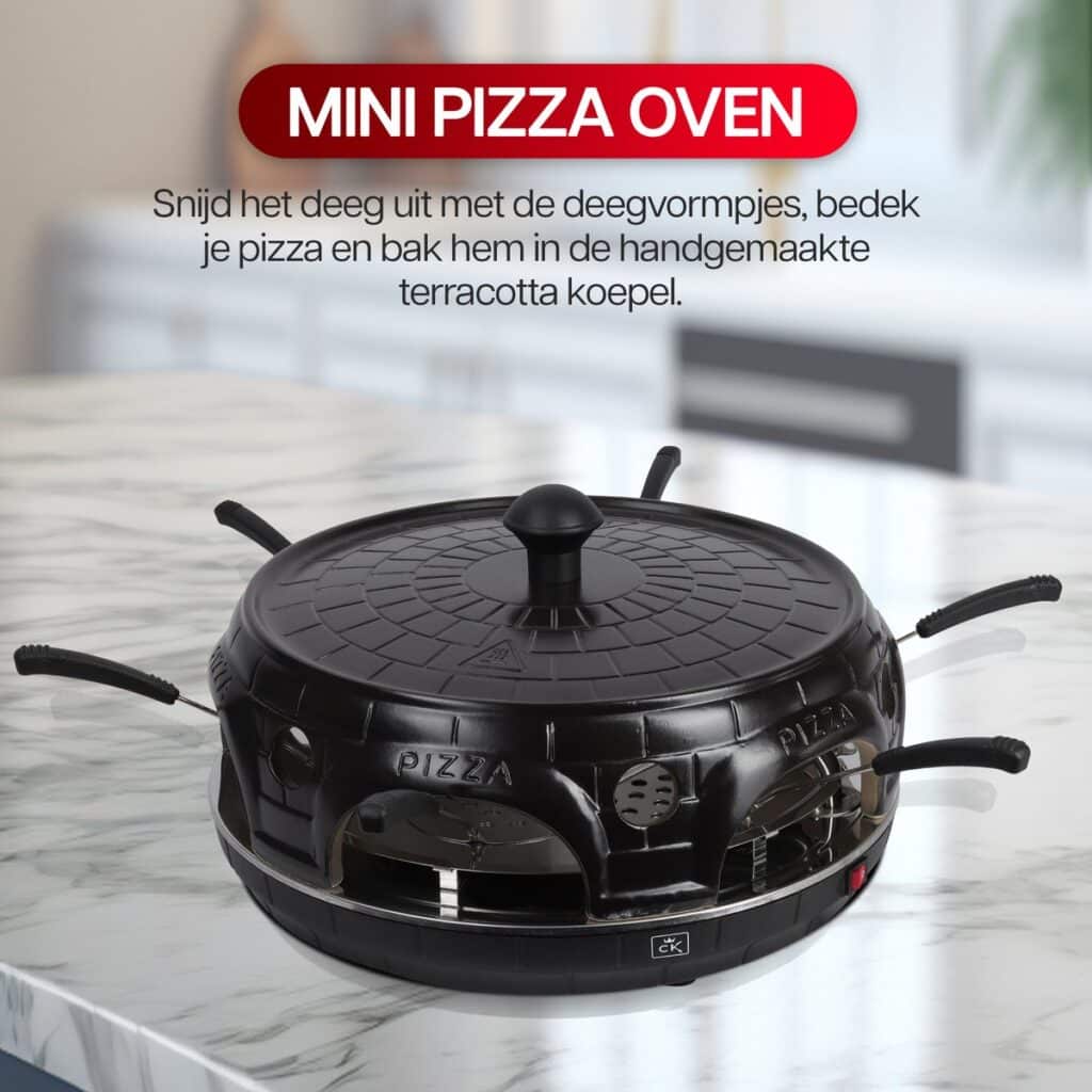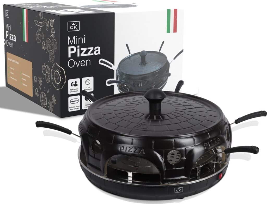 Creëer heerlijke mini-pizza’s in slechts 6 tot 7 minuten met de CuisineKing Mini Pizza Oven! Deze compacte oven is ideaal voor gezinsavonden of feestjes, waar je eenvoudig perfect gebakken mini-pizza’s kunt maken. De oven is uitgerust met 6 mini-bakstenen platen met antiaanbaklaag en een stevige antislip basis, zodat je veilig en zonder plakken kunt bakken.