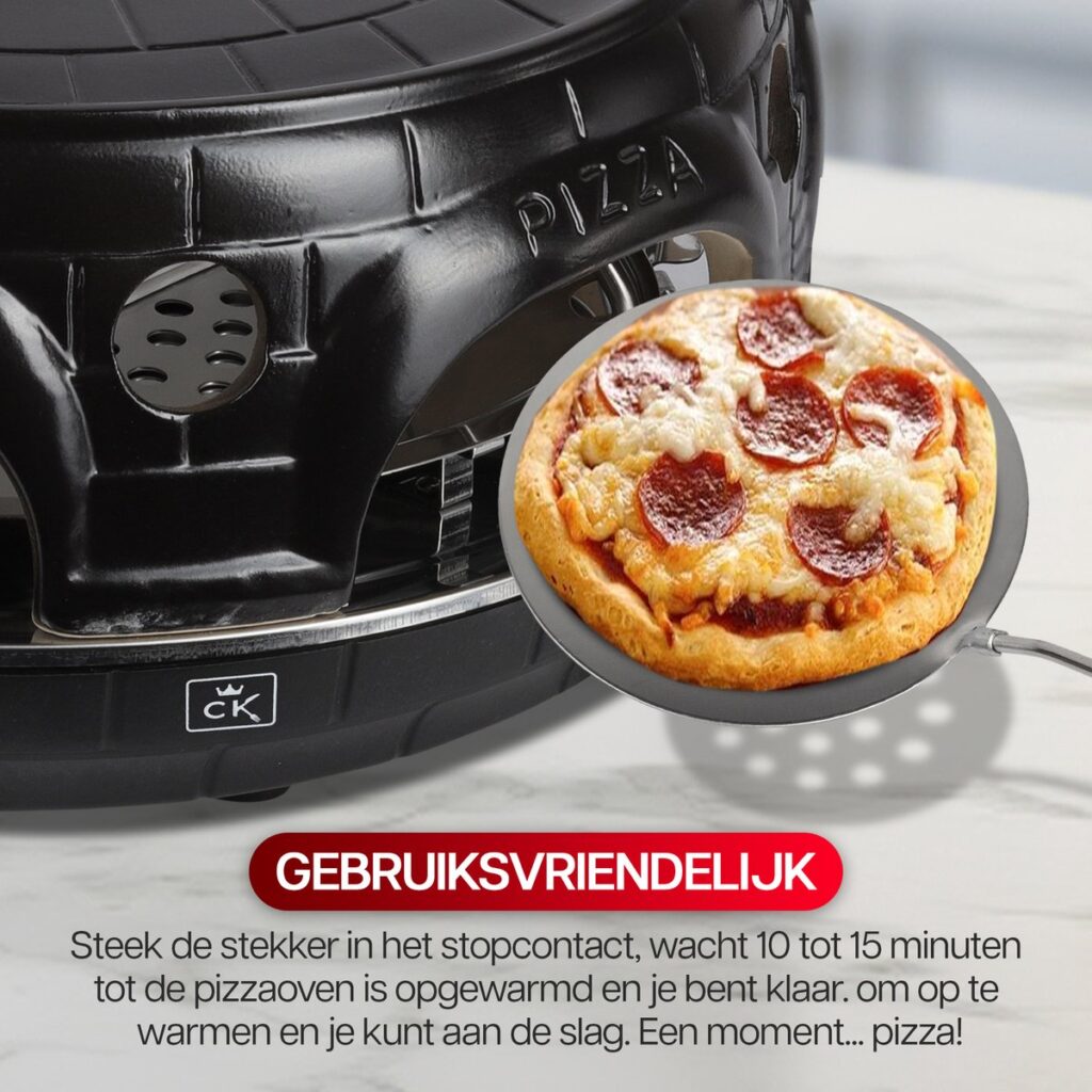 Met de CuisineKing Mini Pizza Oven wordt elke pizza-avond een feestje, omdat zowel jij als de kinderen de pizza’s volledig naar eigen smaak kunnen versieren. Kies je eigen favoriete ingrediënten en maak je eigen unieke creaties. Dankzij de meegeleverde ronde deegsnijder snijd je het deeg gemakkelijk in een perfecte cirkel, wat zorgt voor professioneel ogende mini-pizza’s die niet alleen heerlijk smaken, maar er ook fantastisch uitzien. Deze oven maakt het bakken van pizza’s niet alleen eenvoudig, maar ook leuk en interactief voor het hele gezin!