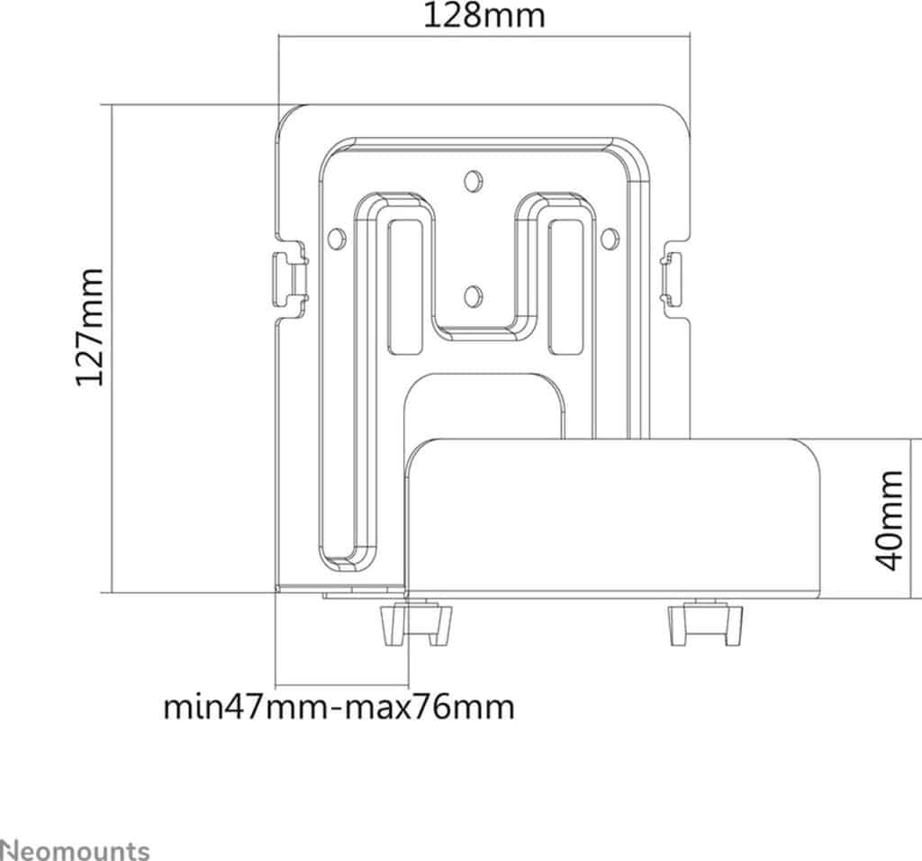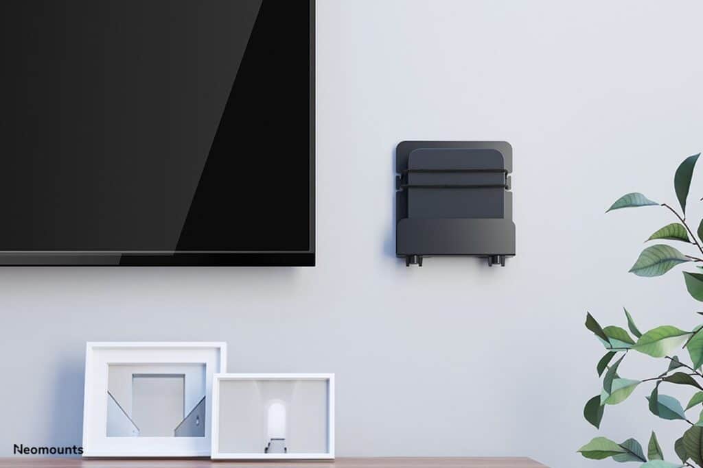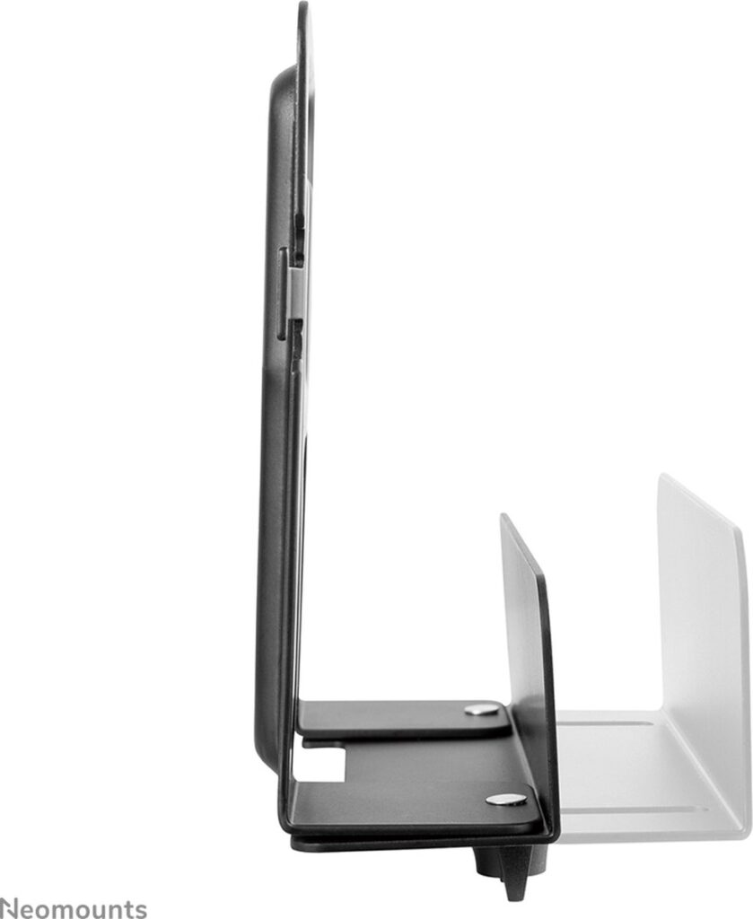 De Neomounts AWL-450BL is een universele mediaspeler houder met een breedte van 12,8 cm en erg handig als ondersteuning voor mediaspelers en andere kleine hardware apparaten. Het verstelbare ontwerp maakt de houder geschikt voor diverse mediaspelers, kabel- en tv-boxen. De diepte van de mediaspeler houder is eenvoudig te verstellen van 4,7 tot 7,6 cm door middel van de handige draaiknoppen. De elastische banden garanderen een veilige en stevige positionering van uw apparaten.