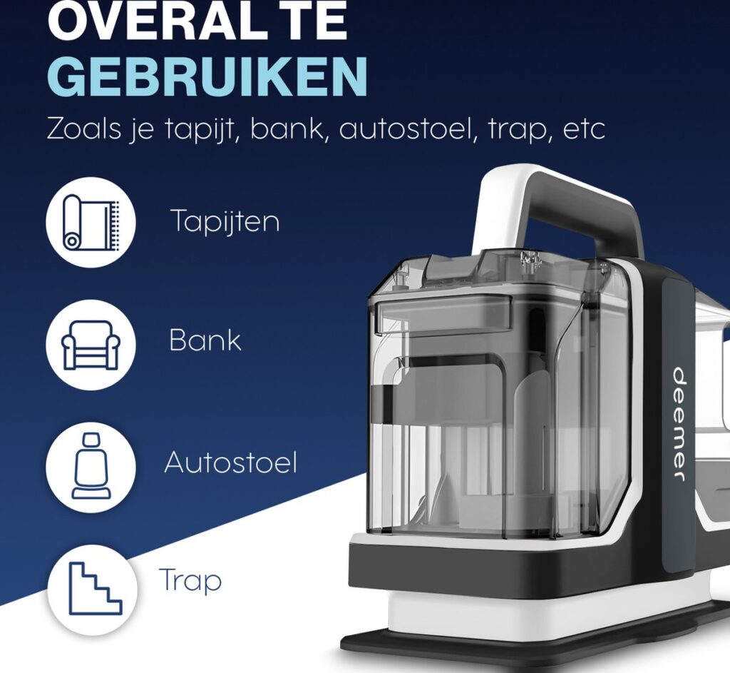 Heb je een vies tapijt, bank of stoel met allemaal haren of beestjes waar je elke dag in leeft? Het is tijd om deze goed schoon te maken! Met de Deemer Tapijtreiniger verwijder je alle nare viezigheid die in jouw tapijt of meubels zit. In een mum van tijd leef jij weer in een fris en schoon huis.