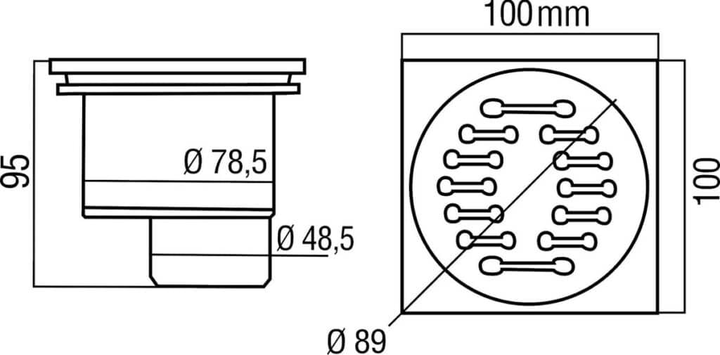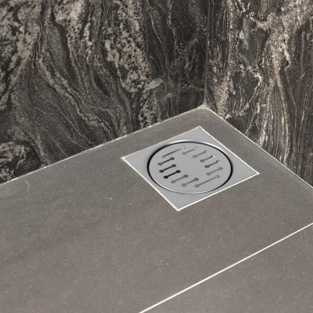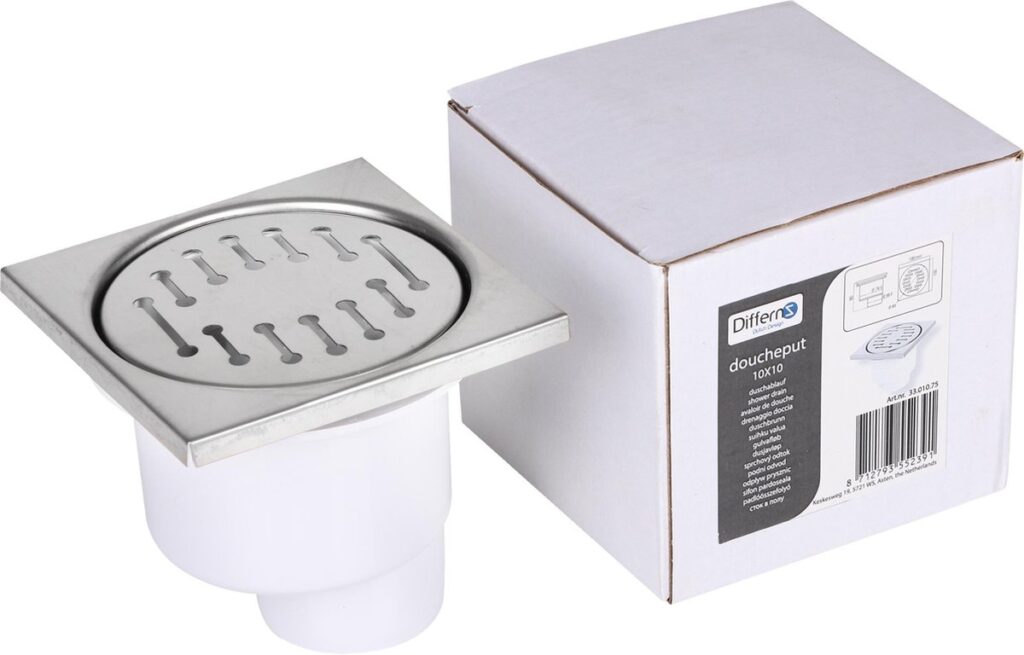 Differnz doucheput 10×10 cm, eenvoudig model geschikt voor in iedere badkamer. Voorzien van een onderuitlaat, gemaakt van kunststof met rvs rooster. Kleur mat chroom