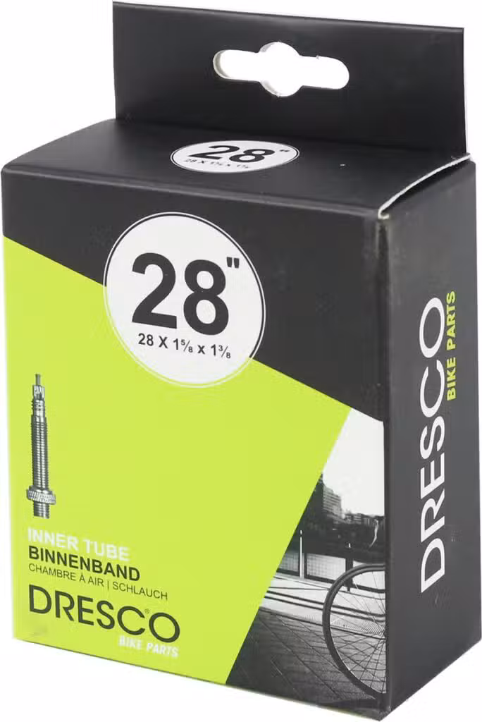 Dresco binnenband met een hoge weerstand tegen lekrijden. Geschikt voor onder andere de bandenmaat 28 x 1 5/8 x 1 3/8 of ETRTO maat 37-622 en uitgevoerd met een 40mm hoog Sclave (Frans) ventiel. Door de hoge elasticiteit is de Dresco binnenband geschikt om een grote verscheidenheid aan bandmaten af te dekken.