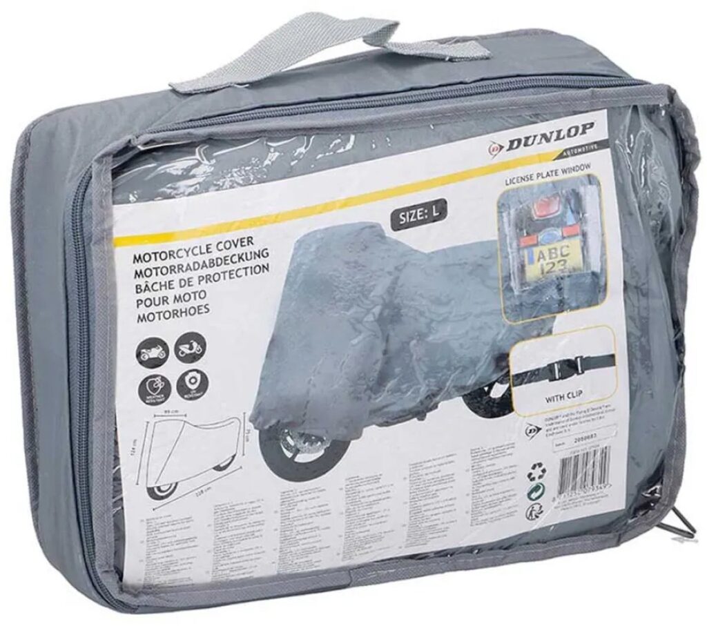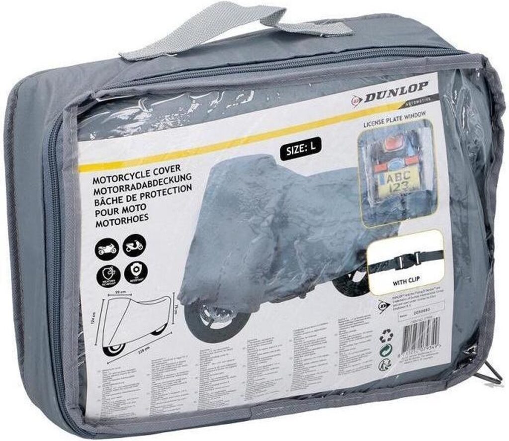 Heb je geen binnenruimte om je motor te stallen, maar wil je hem toch beschermen tegen weer en wind? Dan is deze motorhoes van Dunlop een goede optie. Deze hoes is gemaakt van sterk PVC en heeft dubbel gestikte naden voor extra stevigheid. De beschermhoes voor je motor is scheur-, UV- en weerbestendig en is zowel voorzien van sluitclip evenals doorzichtig venster voor het kenteken.
