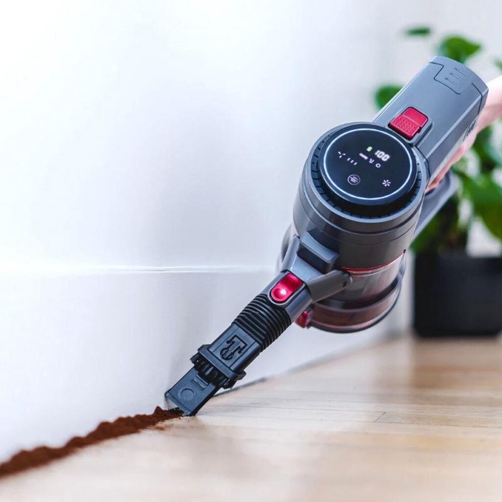 De steelstofzuiger is uitgerust met een kwalitatief en eenvoudig te bedienen touchscreen. Kies eenvoudig uit 3 snelheden, controleer de batterijstatus of krijg een waarschuwing wanneer de buis of borstel moet worden gereinigd.