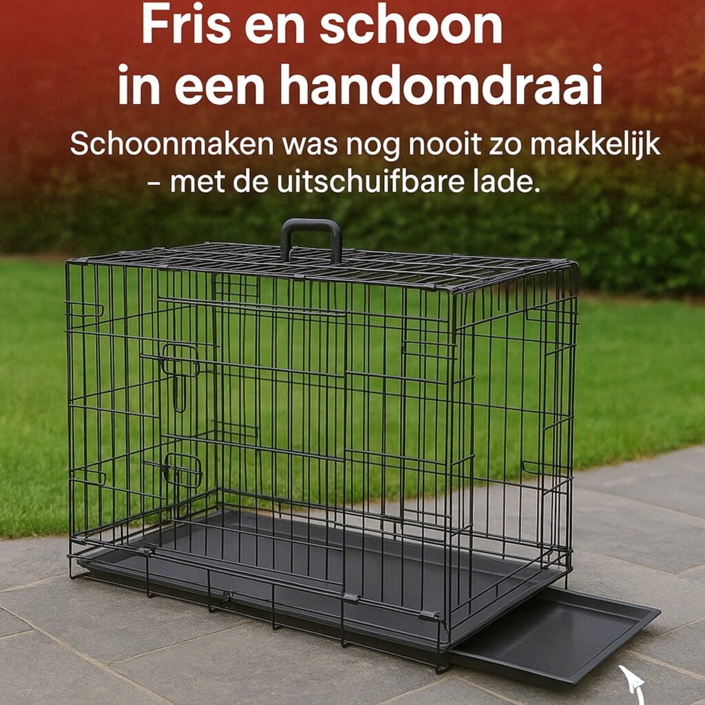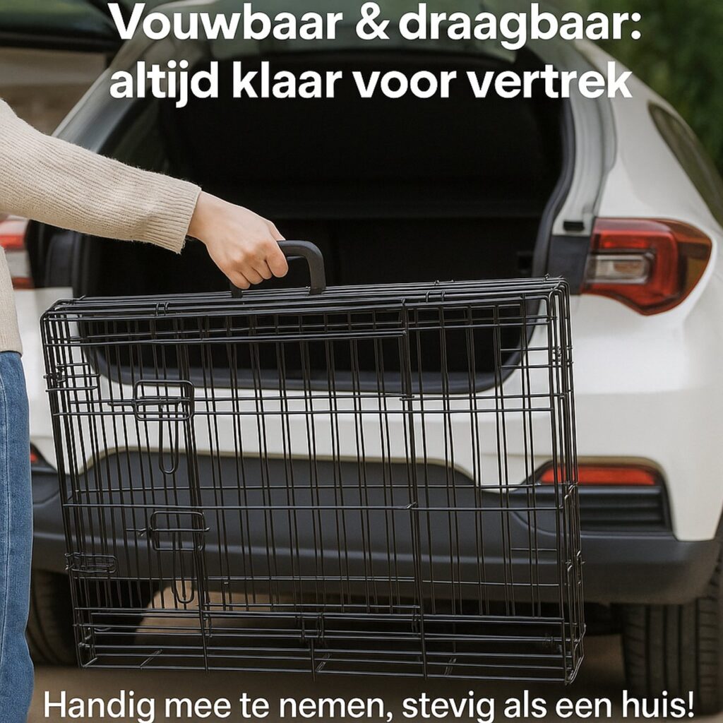 Opvouwbare hondenbench – de draadkooi klap je snel in of uit, ideaal voor thuisgebruik, logeerpartijen of wanneer je onderweg bent.