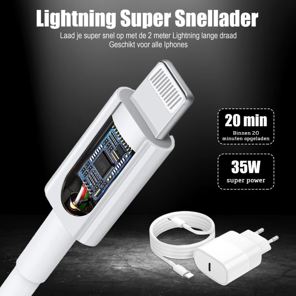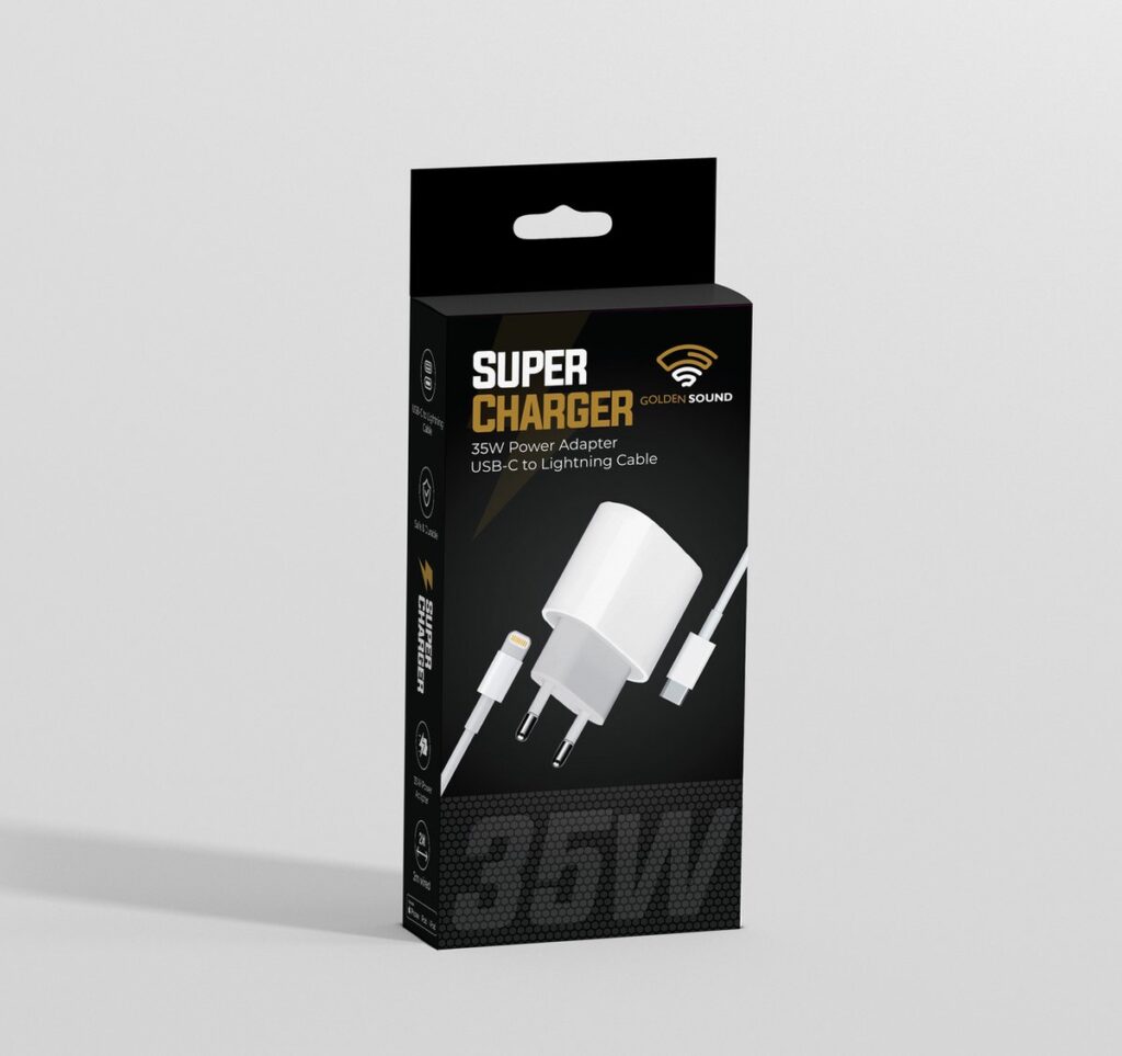 Ben je opzoek naar een hoogwaardige en vooral snelle oplader? Bekijk dan de Golden Sound Snellader. Laad jouw apparaten in een oogwenk op met de Golden Sound Snellader. Deze indrukwekkende snellader combineert ongeëvenaarde snelheid, betrouwbaarheid en een slank ontwerp voor een complete oplaadervaring. Deze 35W oplader is compatibel met de Iphone 14 pro, – 14, -13, -12, -11, -Xr, -Xs, -Xs, -Max 8 -,8 Plus, Ipad & Airpods.