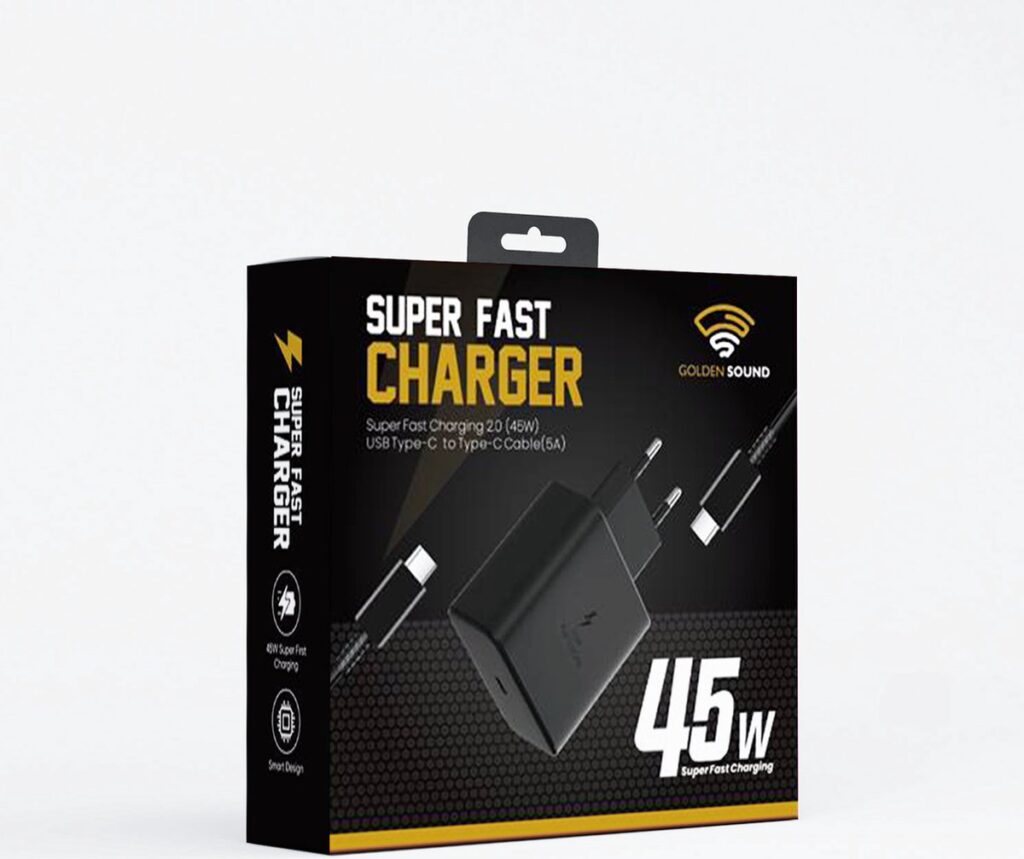 Ben je opzoek naar een hoogwaardige en vooral snelle oplader? Bekijk dan de Golden Sound 45W Snellader. Ideaal voor al je devices! Laad jouw apparaten in een oogwenk op. Deze indrukwekkende snellader combineert ongeëvenaarde snelheid, betrouwbaarheid en een slank ontwerp voor een complete oplaadervaring. Deze snellader heeft maar liefst een wattage van 45W. Geschikt voor Samsung Super Fast Charging (PPS).