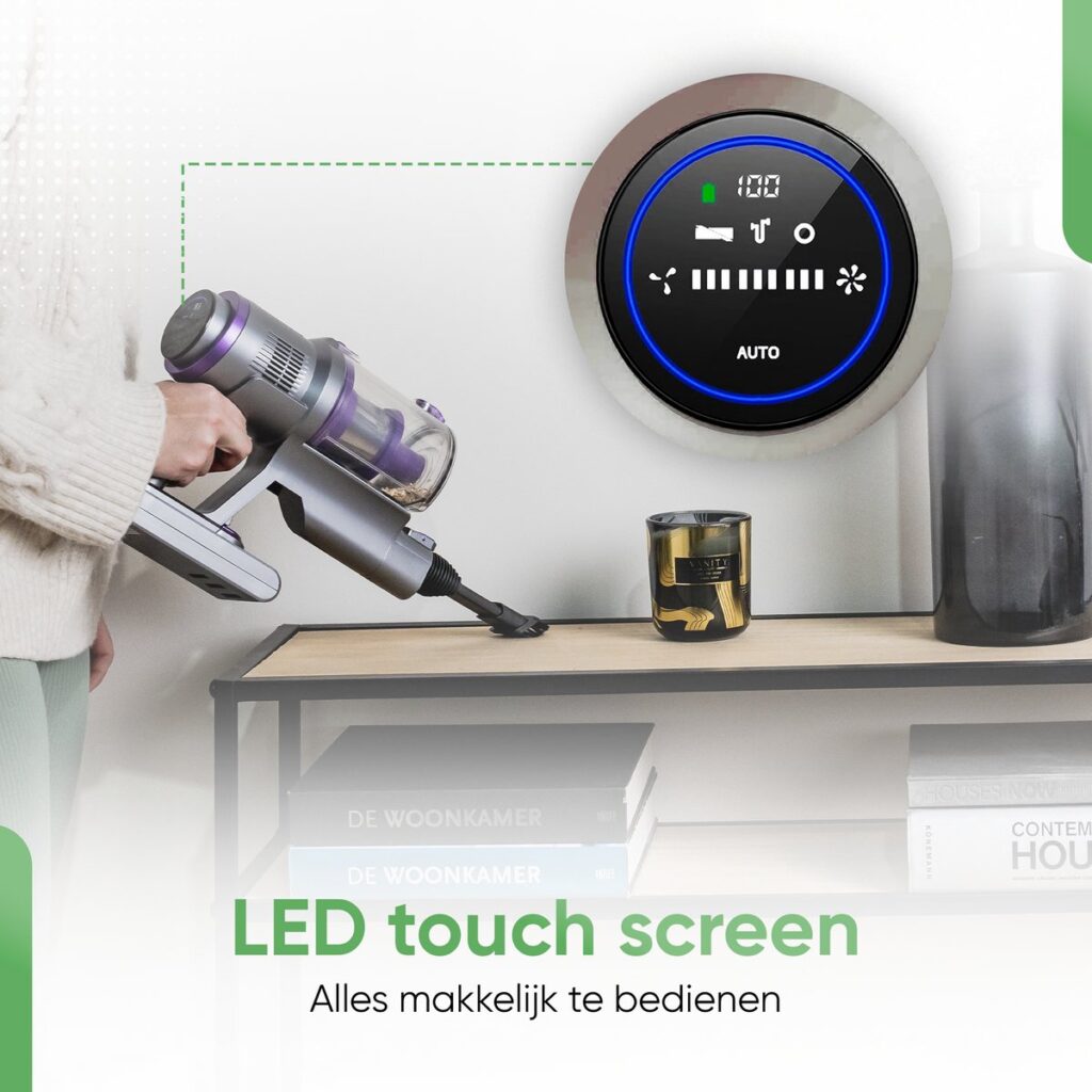 De Heevey steelstofzuiger is voorzien van een led-scherm met touch screen functie. Bedien alles gemakkelijk via de touch screen, de zuigkrachten, de automatische standen of krijg bijvoorbeeld goed inzicht in de batterijduur.