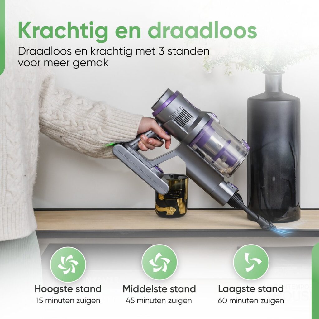✓ Lange batterijduur voor langdurig gebruik: De Heevey draadloze steelstofzuiger heeft een krachtige 2000mAh-batterij die tot 45 minuten continu schoonmaken biedt op één enkele lading.