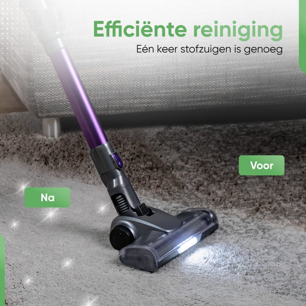 Deze steelstofzuiger beschikt over een luxe zuigmond met een geïntegreerde LED-verlichting. De steelstofzuiger met LED-verlichting in de zuigmond biedt een innovatieve oplossing voor het gemakkelijk en grondig schoonmaken van verschillende oppervlakken, zelfs in donkere hoeken en onder meubels. Met de heldere LED-verlichting direct in de zuigmond wordt zelfs het kleinste vuil zichtbaar, waardoor geen stofje onopgemerkt blijft. Deze functie verbetert niet alleen de schoonmaakprestaties, maar maakt ook het stofzuigen efficiënter en gebruiksvriendelijker, doordat gebruikers moeiteloos alle vuil kunnen zien en verwijderen.