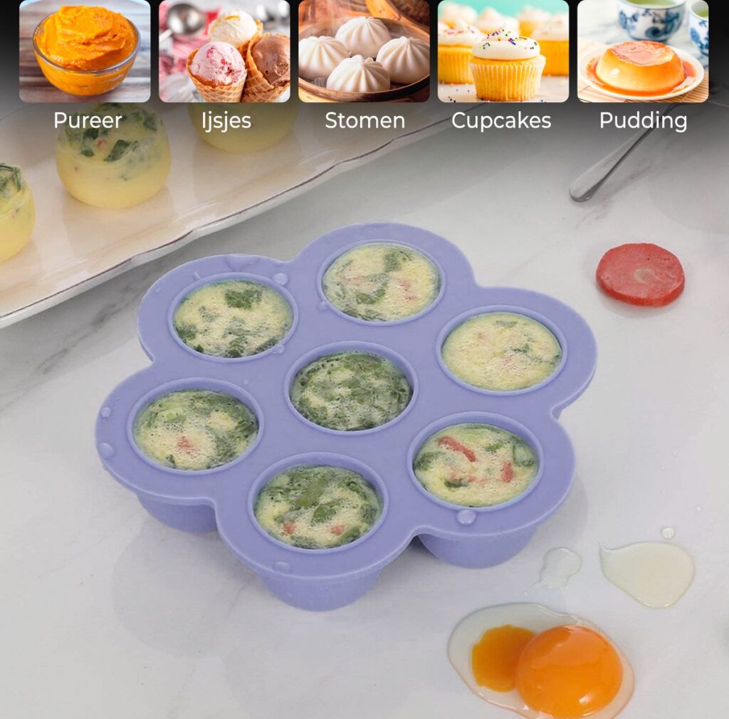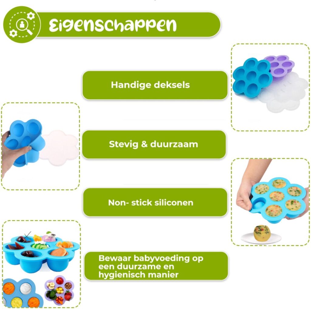 De babyvoeding bewaarbakjes hebben 14 porties om meerdere dagen zelfgemaakte voeding te bewaren. Ze zijn gemaakt van 100% BPA-vrij siliconen materiaal, waardoor je gemakkelijk ingevroren voeding per portie kunt ontdooien. Sluit de bewaarbakjes af met het meegeleverde dekseltje om de voeding hygiënisch te houden.