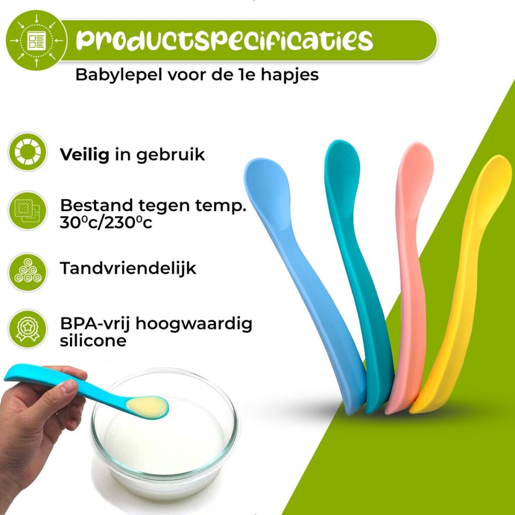 Inclusief babylepeltjes: de babylepeltjes zijn gemaakt van zachte siliconen dat het gevoelige tandvlees en de tandjes van de baby beschermt.