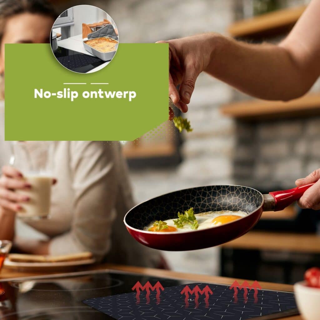 Kan de inductie mat direct op de inductiekookplaat worden gelegd? Ja, de inductie mat is ontworpen om direct op de kookplaat te worden geplaatst.