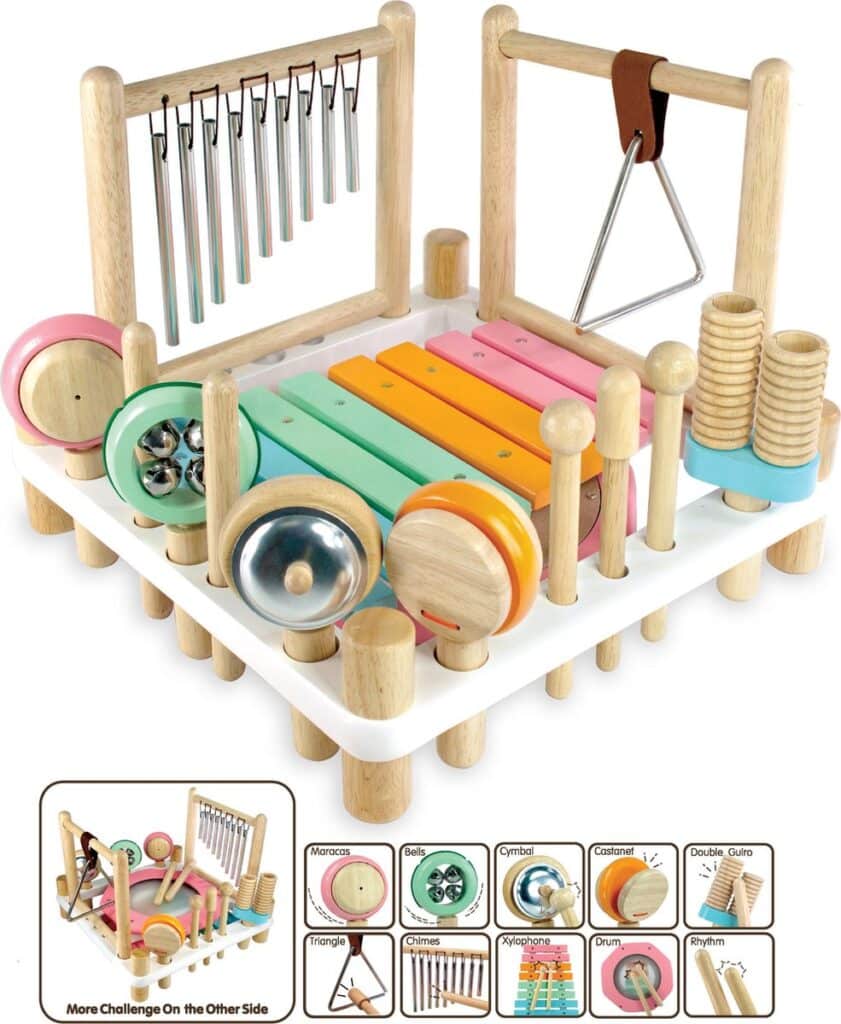 De set is gemaakt van hout en het middelste plateau is draaibaar.