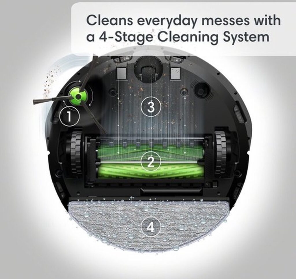 Objectdetectie en Vermijding: De robot is gebouwd met PrecisionVision-navigatie. Dankzij deze technologie en iRobot OS herkent de Roomba precies wat er op zijn pad ligt tijdens een schoonmaaktaak en past hij zich hierop aan. Voorwerpen zoals kabels, schoenen, sokken en zelfs huidsdierongelukjes worden gedetecteerd en vermeden. Zo kun je erop vertrouwen dat de robot de klus klaart.