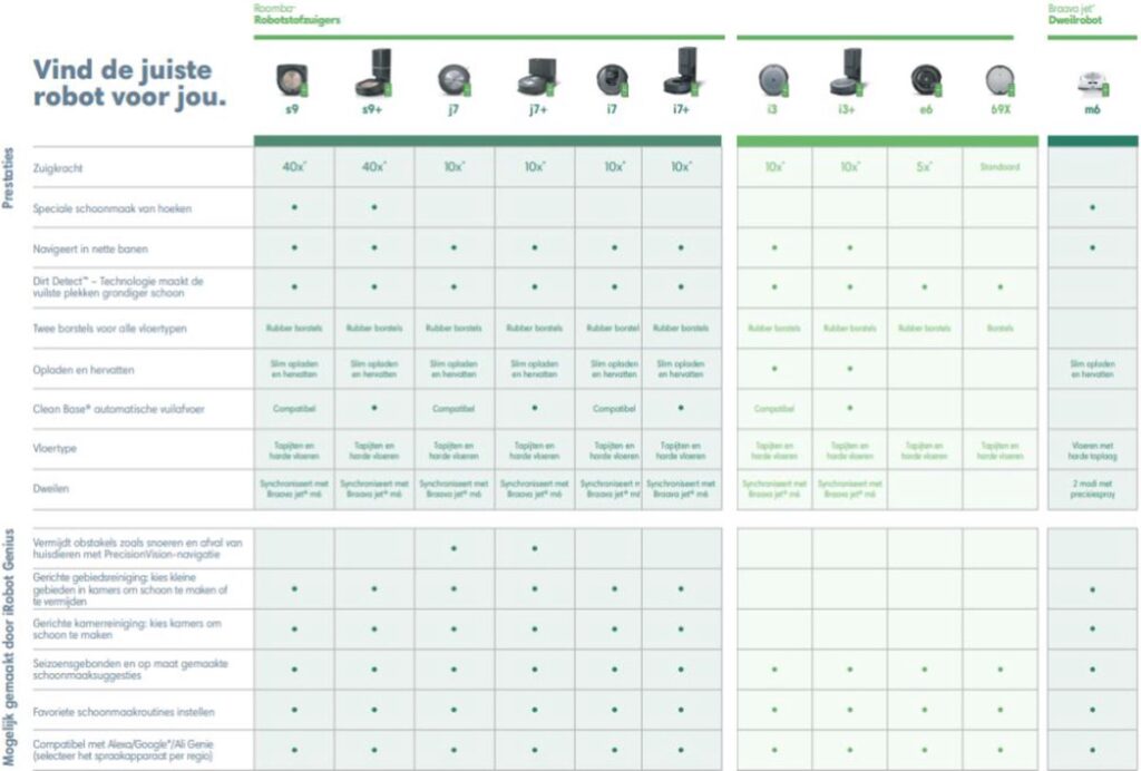 *vergeleken met een schoonmaaksysteem uit de Roomba® 600-serie