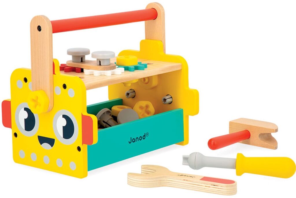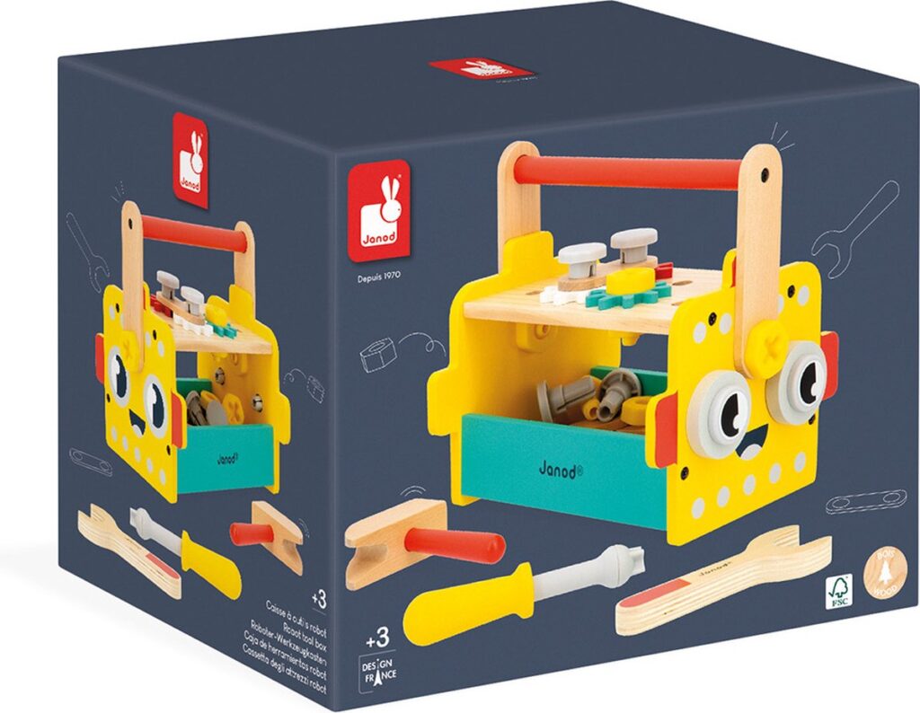 Deze robot gereedschapskist is gemaakt van FSCâ„¢-gecertificeerd hout en maakt deel uit van onze collectie doe alsof doe-het-zelf speelgoed: Brico’Kids.