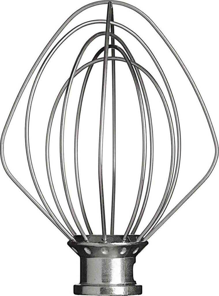 Het luchtig kloppen van eieren, slagroom en mayonaise door de meegeleverde draadgarde. RVS draden en aluminium kop.