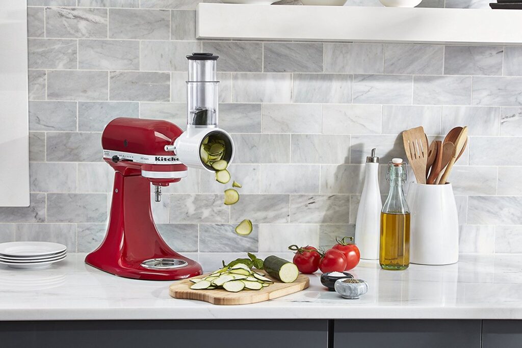 Veelzijdige KitchenAid spiralschneider die je mixer omtovert tot een 4‑in‑1 snijhulp. Geschikt voor spiraliseren, snijden, ontkernen en schillen van groente en fruit, met tot 9 mogelijke combinaties en duurzame metalen constructie.