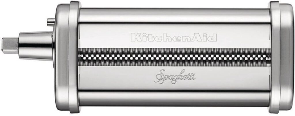 De pastaset is geschikt voor alle Kitchenaid mixers en bestaat uit drie stevige rvs onderdelen. De pastaroller kan lasagnevellen maken tot 140 mm breed. Daarnaast bevat de set twee snijders: één voor tagliatelle en één voor spaghetti. Doordat de opzetstukken worden aangedreven door de mixer heb je beide handen vrij voor het verwerken van het deeg.