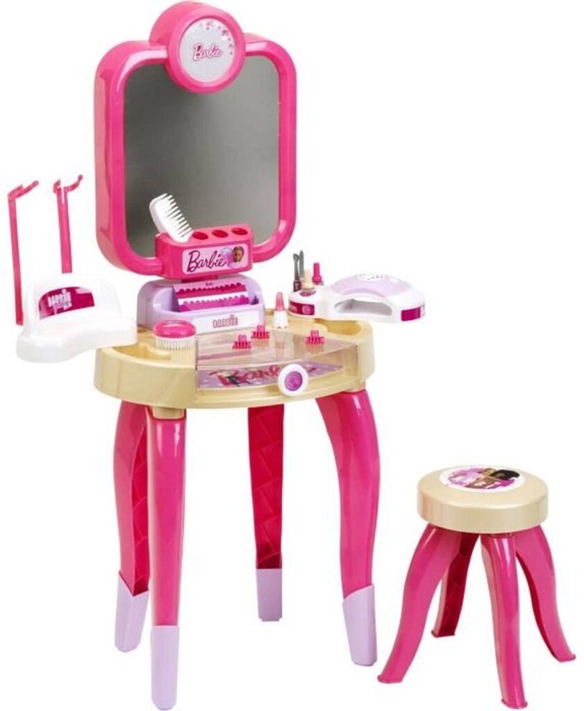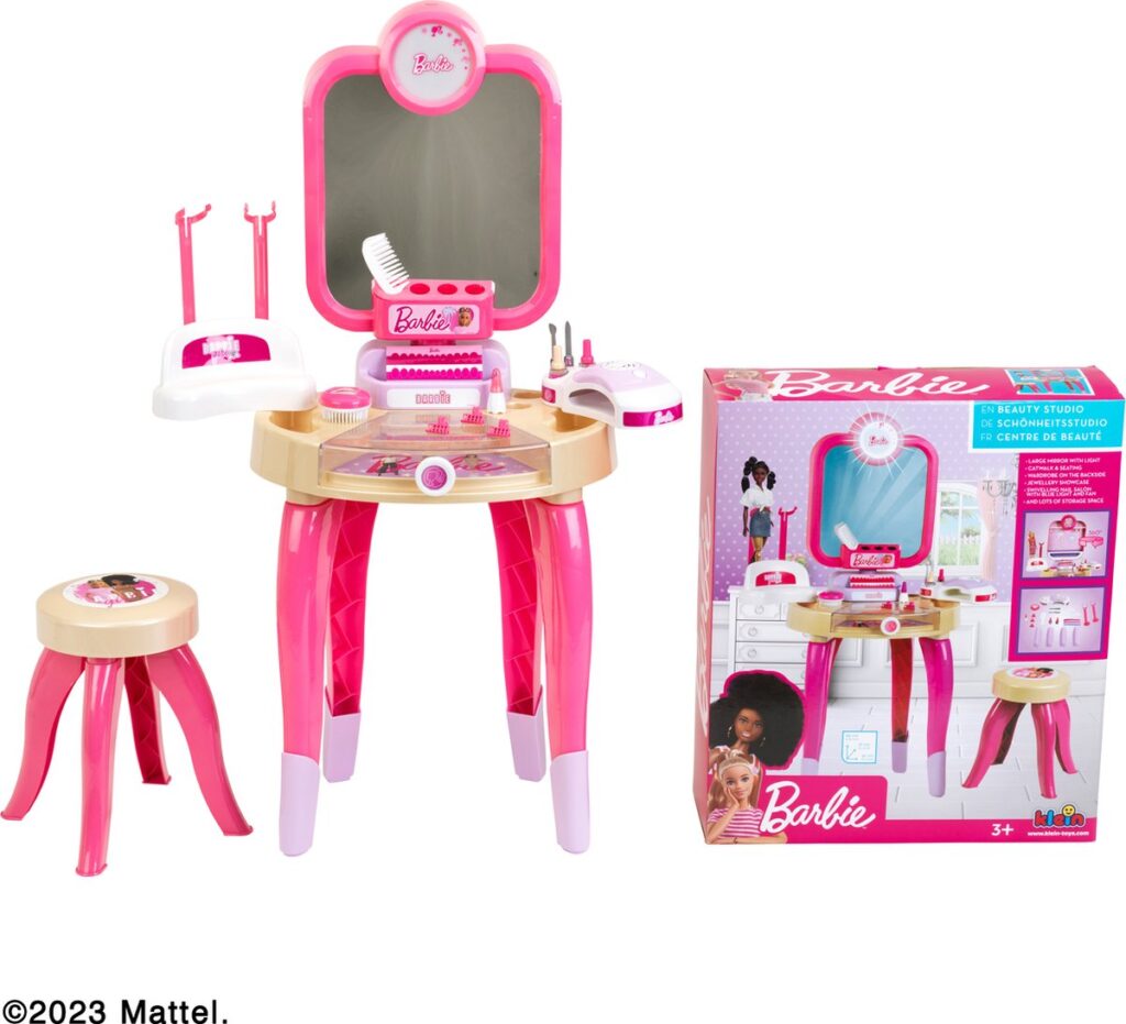 De schoonheidsstudio bestaat uit een tafel met draaibare planken, een roterende spiegel met verlichting en een krukje. Bovendien is hij uitgerust met tal van gebruiksvoorwerpen: Nageldroger met lucht- en lichteffecten, twee poppenhouders, nagelvijl, nagelriembewerker, twee flesjes nepnagellak, kam, lippenstift, borstel, haarclips en drie hangers.