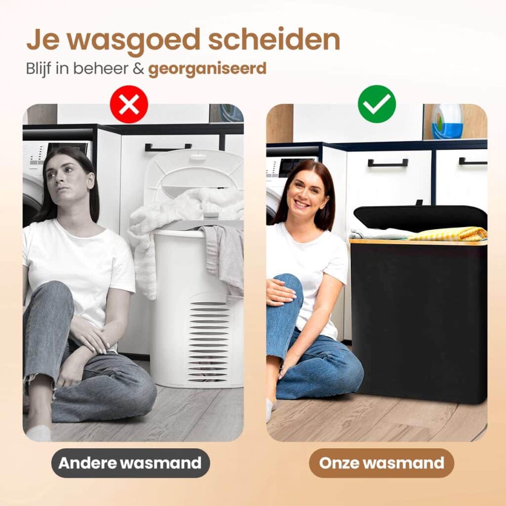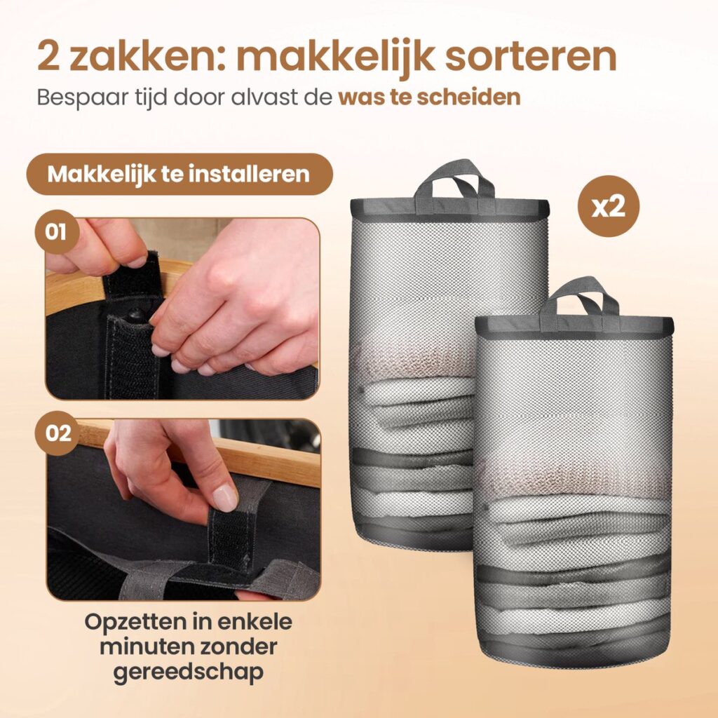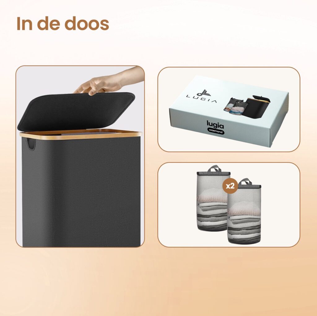 De Lugia Wasmand wordt geleverd met twee handige waszakken die je kunt verplaatsen. Dit maakt het sorteren en organiseren van je wasgoed een fluitje van een cent. Of je nu lichte en donkere kleding wilt scheiden of delicate stoffen apart wilt houden, met deze waszakken kan het allemaal.