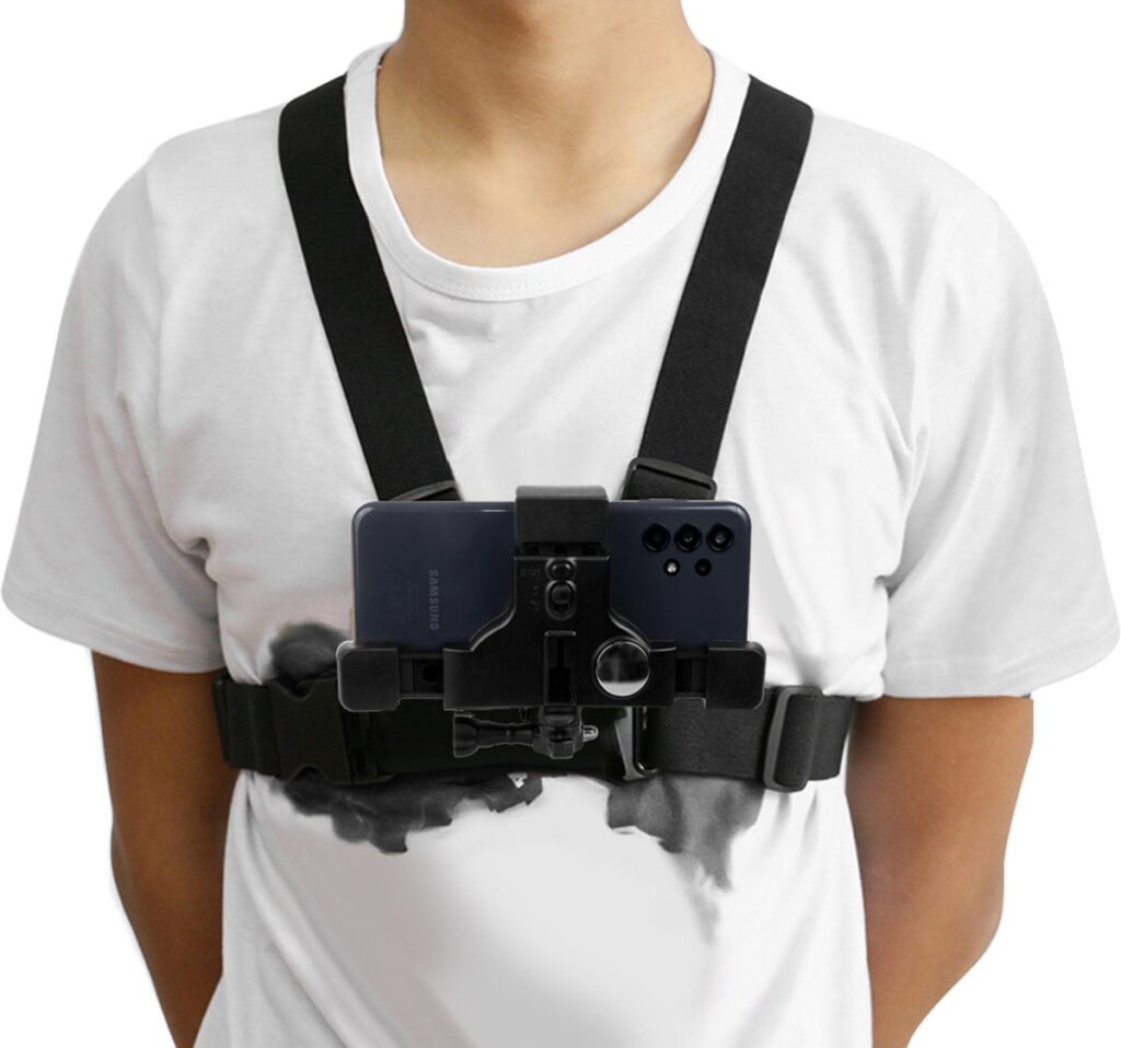Het harnas maakt het mogelijk om een GoPro camera of telefoon op de borst te bevestigen. Het harnas kan worden gebruikt door zowel mannen als vrouwen, zowel klein als zwaargebouwd. Het harnas is gemaakt van kunststof en flexibel rubber, wat garant staat voor hoge kwaliteit en ergonomie.
