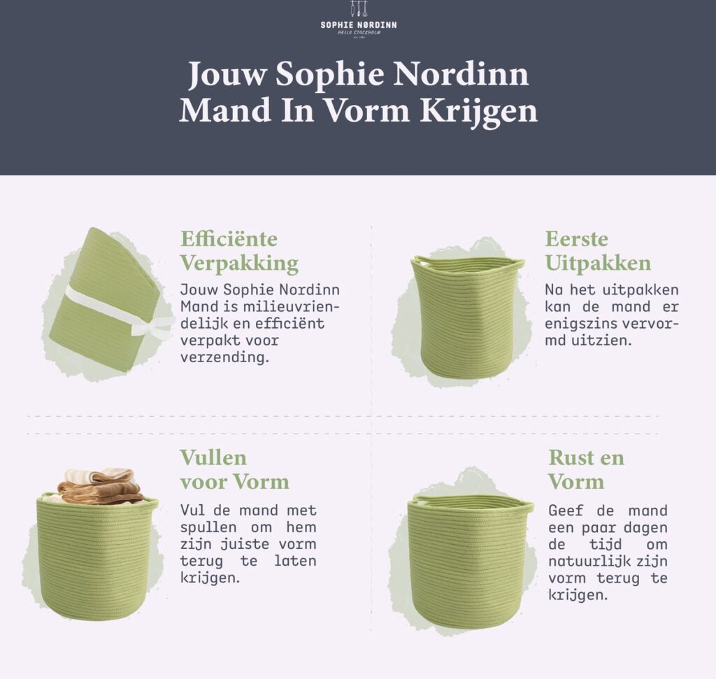 De manden zijn van hoogwaardig materiaal, komen in zeven (7) verschillende effen kleuren. Daarnaast is de manden-serie Stockholm van Sophie Nordinn® minimalistisch, kwalitatief en functioneel. De stijl van deze manden staan ook wel bekend als Nordic, Bloomingville, Japans of Koreaanse stijl. Zonder opsmuk, tijdloos en een prachtig effen design.