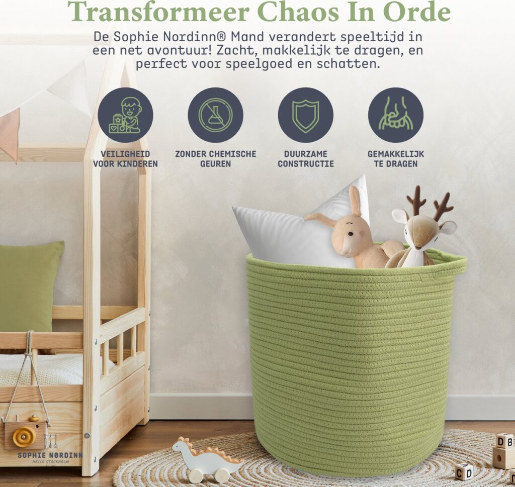 Let op! Om onze producten milieuvriendelijk te vervoeren, zijn onze manden opgevouwen. Het duurt enkele dagen tot deze de oorspronkelijke vorm aannemen. Goed opvullen helpt hierbij maar ook een strijkijzer doet wonderen.
