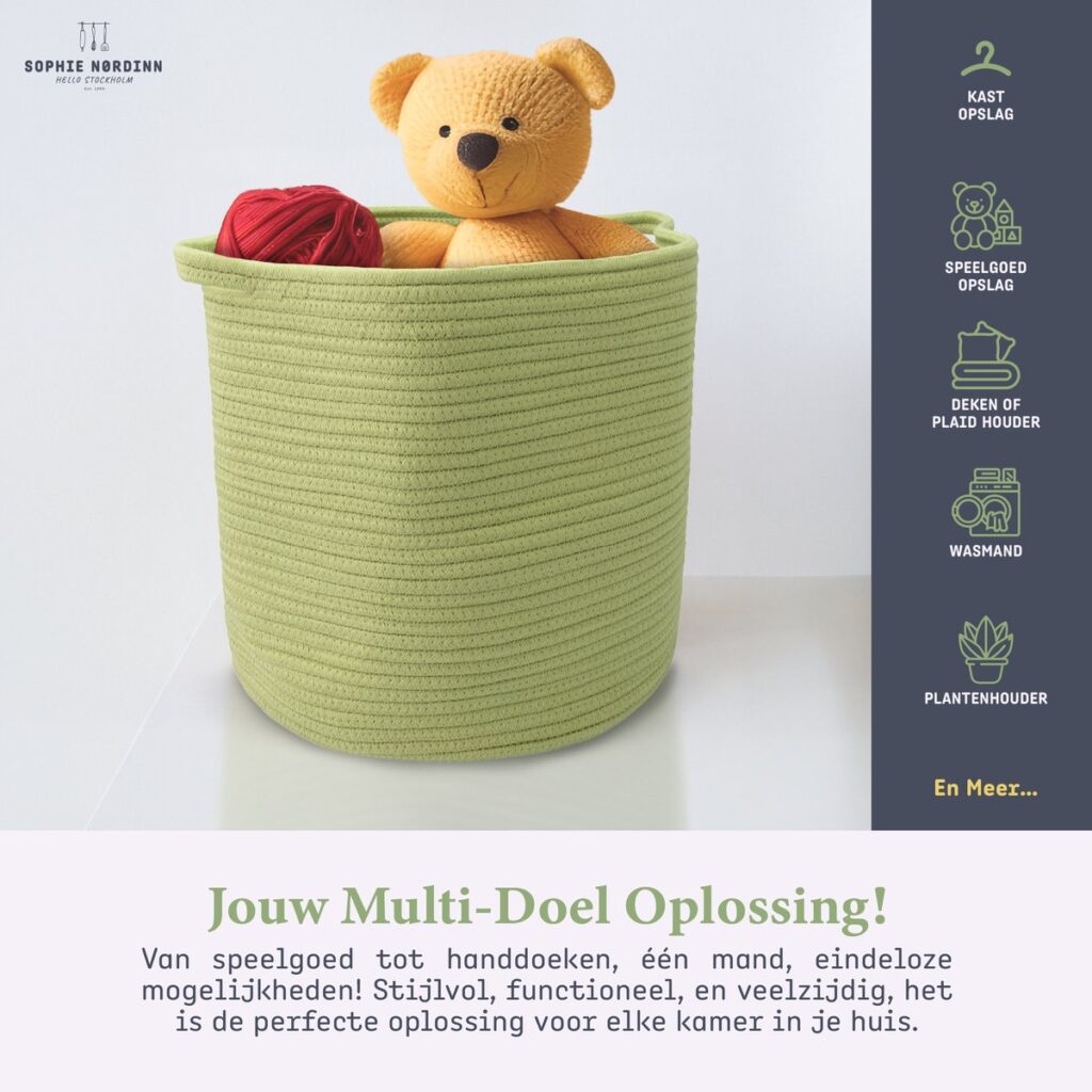 Je kan ze gebruiken als opbergmand voor tijdschriften, rondslingerend speelgoed of opbergbox voor bijvoorbeeld dekens. Deze manden-serie doet het ook geweldig op de kinderkamer. Ook is deze mand geschikt als wasmand of waszak in de badkamer voor al je schone of juist vieze was!
