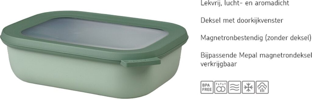 De Mepal Cirqula multikommen zijn de echte alleskunners in de keuken . In de multikommen kun je eten bewaren, invriezen én opwarmen. Dankzij de compacte, stapelbare vorm wordt de beschikbare ruimte in koelkast en vriezer optimaal benut. De meal prep container is geschikt voor gebruik in koelkast, vriezer, magnetron (zonder deksel) en vaatwasser. De Cirqula is voorzien van een goed afsluitbare, transparante deksel die lucht- en aromadicht is. Dit helpt om eten langer vers te houden en maakt de inhoud in één oogopslag zichtbaar. Na gebruik zijn de kommen en deksels eenvoudig te reinigen en ruimtebesparend op te bergen.