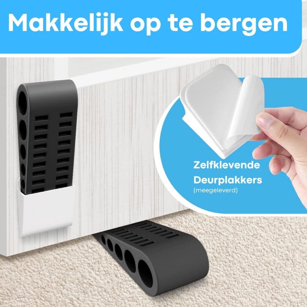 Dankzij de meegeleverde plakkers kunnen de deurstoppers gemakkelijk op de deur zelf worden bevestigd, waardoor ze altijd binnen handbereik zijn wanneer je ze nodig hebt. Geen gedoe meer met het zoeken naar deurstoppers in lades of kasten; ze zijn direct beschikbaar voor gebruik.