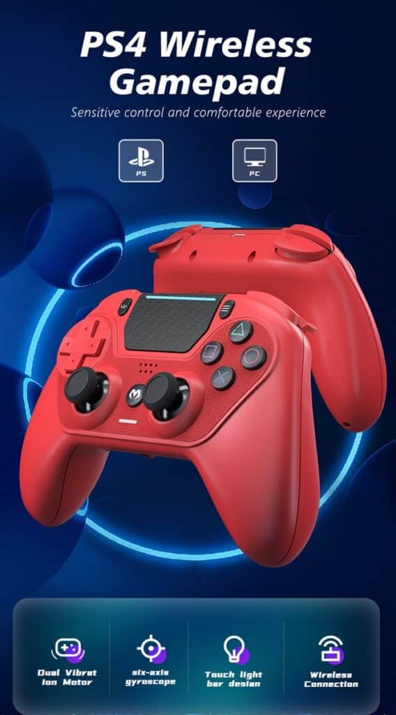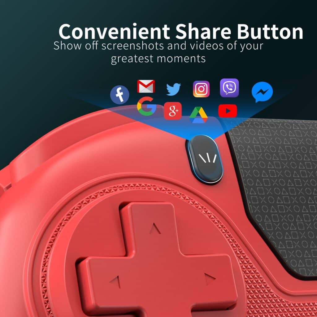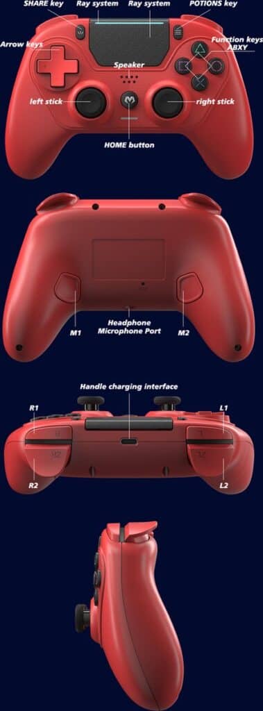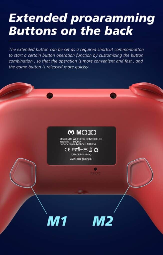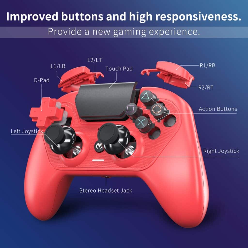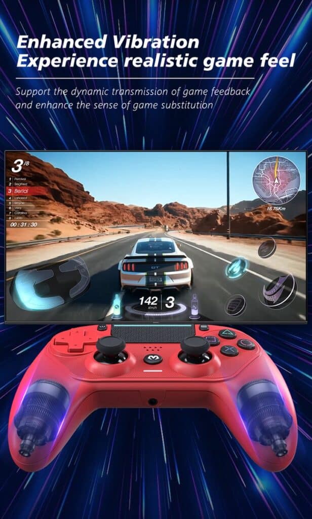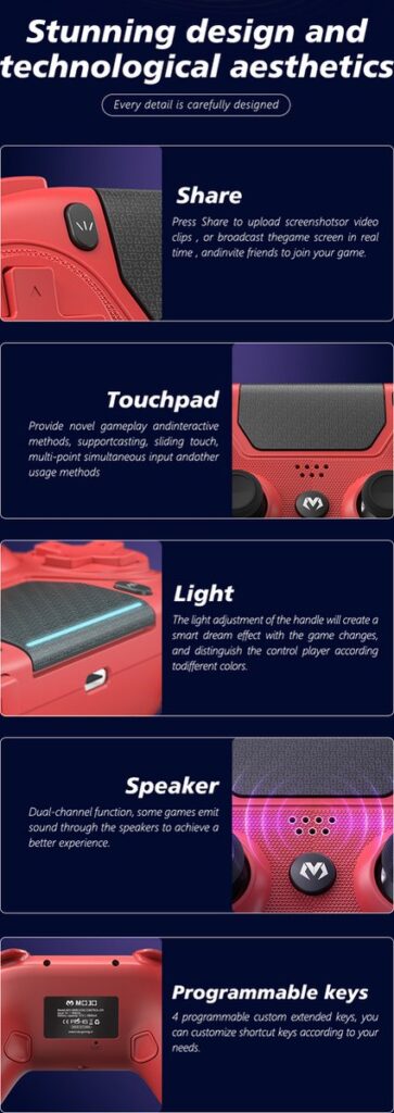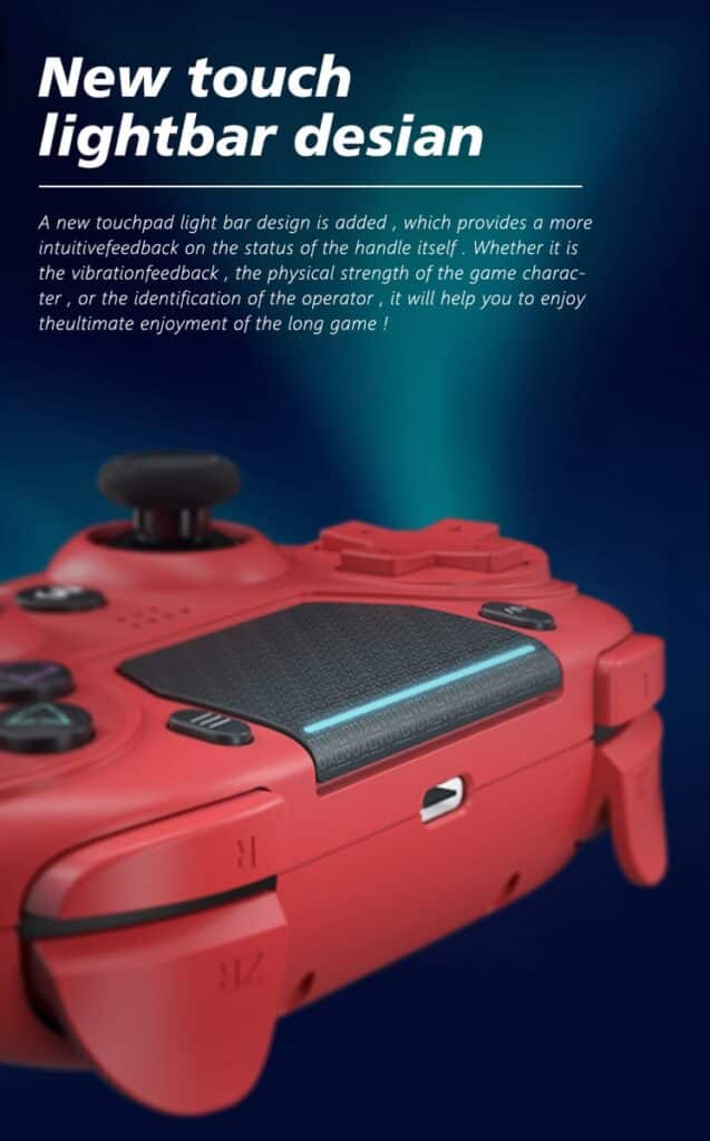 Qua uiterlijk en prestaties is deze controller vergelijkbaar met de PS4 controller van Sony. De wireless controller beschikt over een zeer precieze 6-assige bewegingssensor en een touchpad boven op de controller. De touchpad maakt de Start en Select knoppen overbodig.