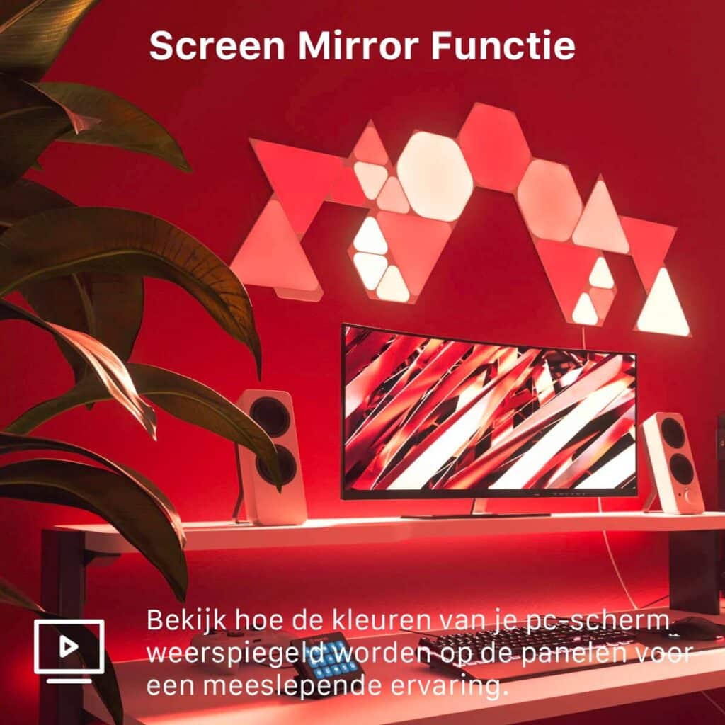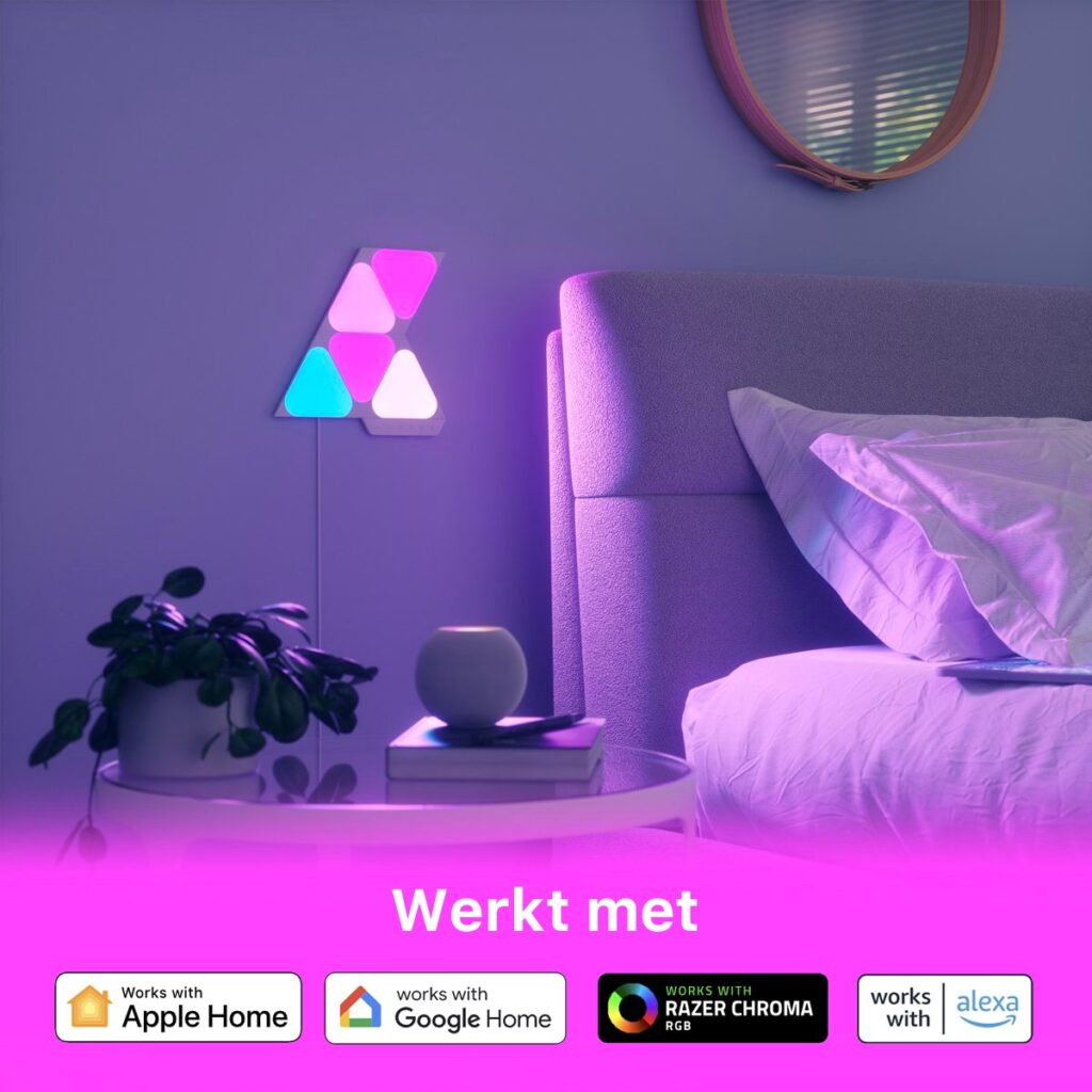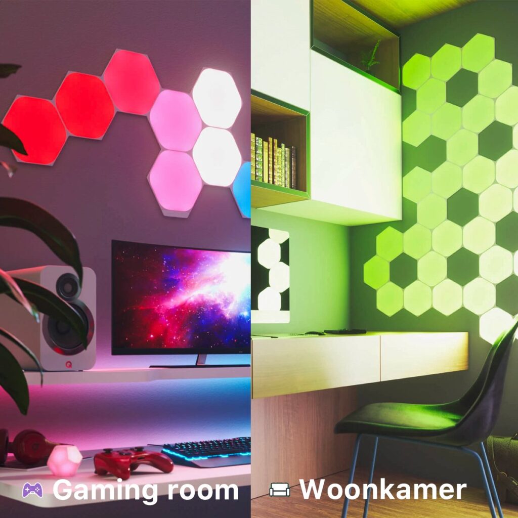 Slimme modulaire lichtpanelen die van kleur veranderen, met vormen die je kunt mixen en matchen voor volledige ontwerpvrijheid. Verkrijgbaar in zeshoeken, driehoeken en minidriehoeken. Creëer je eigen aangepaste lay-out en transformeer je ruimte met kleur en licht in enkele minuten dankzij de eenvoudige installatie – gereedschap is niet nodig.