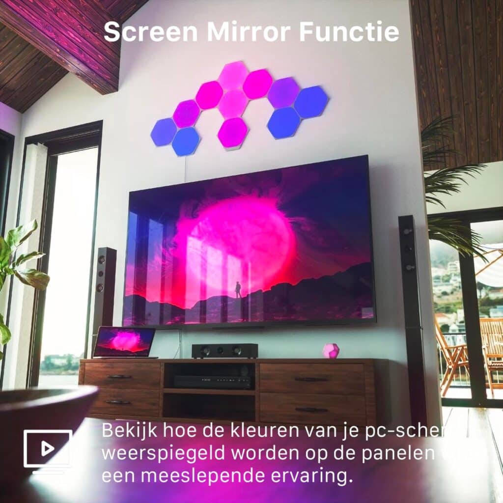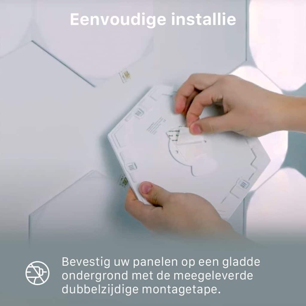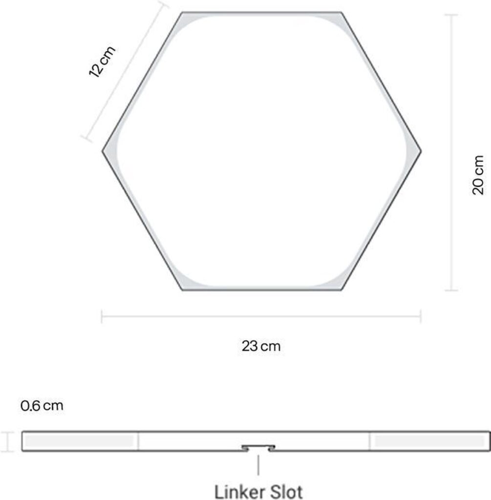 De Nanoleaf Shapes Hexagons zijn modulaire LED-lichtpanelen met een combinatie van slimme technologie en een slank ultradun ontwerp. Ze zijn perfect voor het ontwerpen van een opvallende muur, het inrichten van je persoonlijke productiviteitszone of het creëren van de juiste sfeer voor elke gelegenheid. Transformeer je ruimte met multisensorische ervaringen zoals aanraakinteracties, realtime muzieksynchronisatie, schermspiegel en meer. Pas je eigen scènes en afspeellijsten aan in de Nanoleaf App. Om te installeren bevestig je de panelen gewoon aan de muur met de meegeleverde “no-drill” dubbelzijdige montagetape. Shapes zijn ontworpen met Connect+ technologie om samen te werken met andere shapes in de lijn, en bieden zo grenzeloze verlichtings-, ontwerp- en IoT-mogelijkheden voor je smart home inrichting.