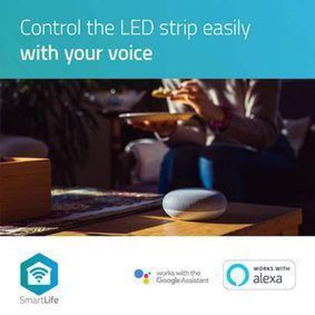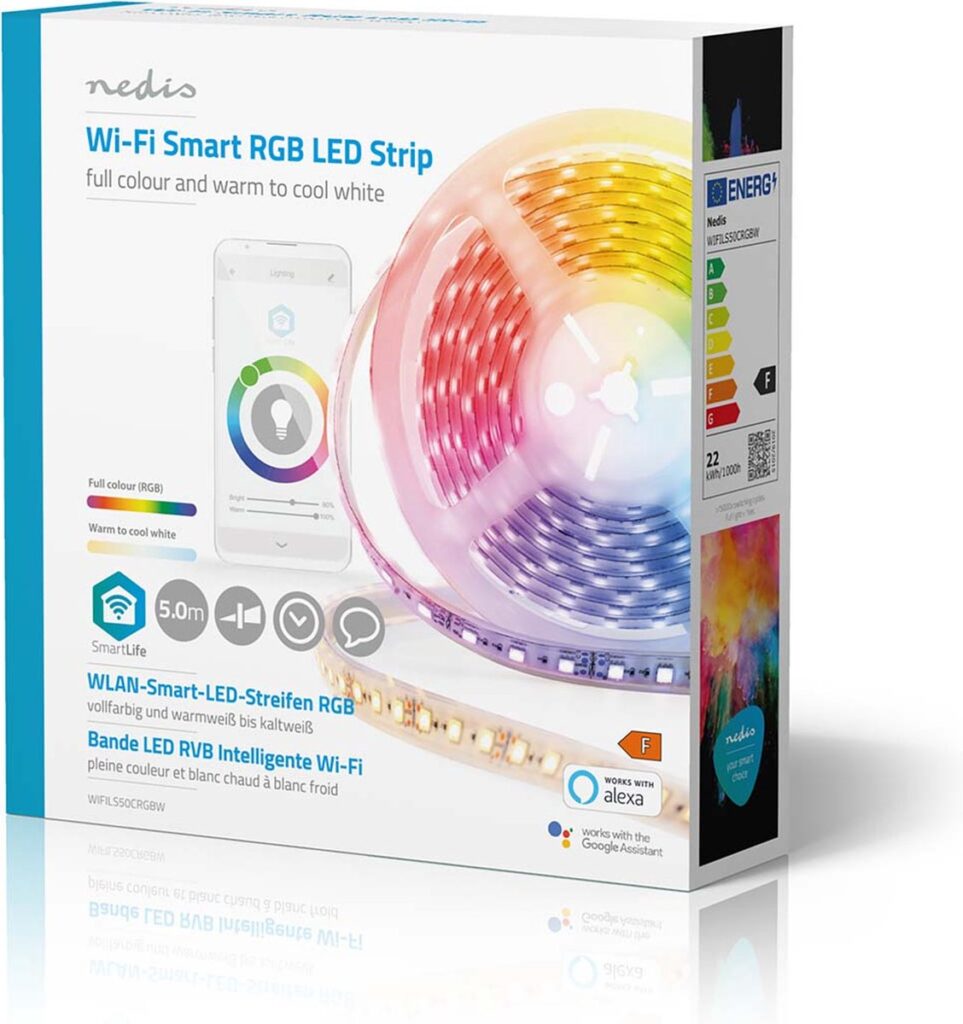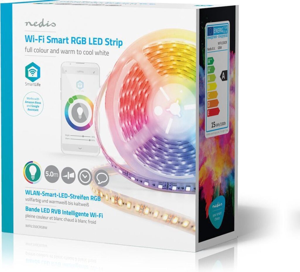 Gebruik deze slimme ledstrip om in elke ruimte de sfeer te bepalen. Regel hem in de Nedis SmartLife-app, stel schema’s of automatische programma’s in, of gebruik je favoriete spraakassistent om de helderheid en de kleur van de ledstrip te regelen. Hij wordt direct op je WiFi aangesloten, dus geen aparte hub nodig.