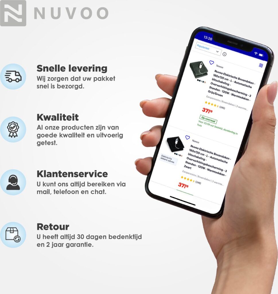 De ventilatorbladen worden beschermd door een metalen behuizing. Door de ventilator te verplaatsen met het handvat hoeven vingers nooit in de buurt van de bladen te komen. De ventilator beschikt over een beveiliging tegen oververhitting. Zo kun je de statiefventilator van Nuvoo altijd zonder zorgen gebruiken!