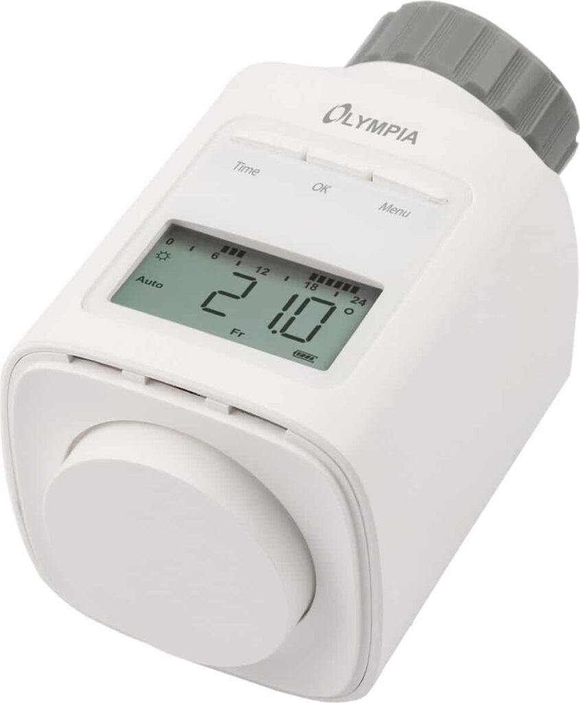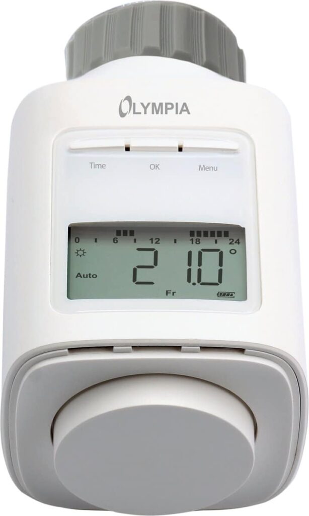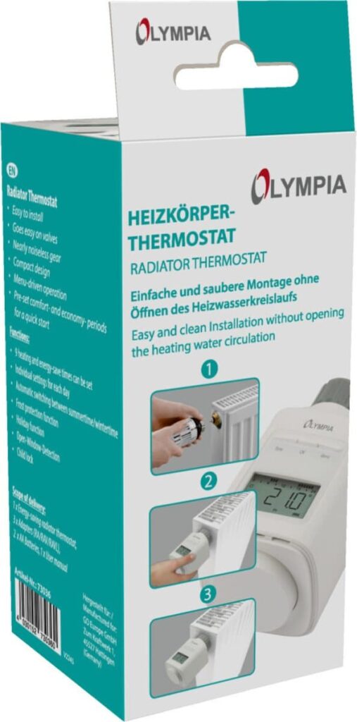 De Olympia HT 430-23A elektronische radiatorthermostaat is een energiezuinige regelaar waarmee je tot 30% an stookkosten kunt besparen. De thermostaat heeft een boost-functie voor snel opwarmen en kan een temperatuurprofiel met maximaal 9 intervallen instellen. De thermostaat heeft een goed leesbaar LCD-display en is makkelijk te installeren. De set wordt geleverd met 3 adapters en 2 AA-batterijen en een Nederlandse gebruiksaanwijzing. Zo kun je de thermostaat gemakkelijk installeren. Het apparaat is geschikt voor MNG, Honeywell-Braukmann, Oventrop, Schlösser, Comap, Valf Sanayii, Idmar, Jaga, Junkers, Pegler, R.B.M., Watts, Danfoss RA Herzadapter en meer.