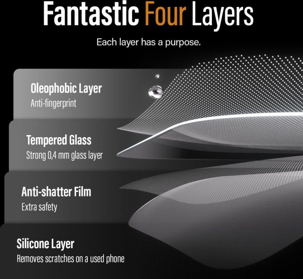 Met het handige inbegrepen installatie hulpmiddel kun je zelf professioneel de screenprotector op je Apple iPhone 14 Pro Max plaatsen. Het hulpmiddel zorgt ervoor dat de screenprotector precies op de juiste plek geïnstalleerd zal worden, zonder dat je hier veel ervaring voor nodig hebt. Dit maakt het nu voor iedereen mogelijk om een screenprotector perfect uitgelijnd te plaatsen op de Apple iPhone 14 Pro Max.